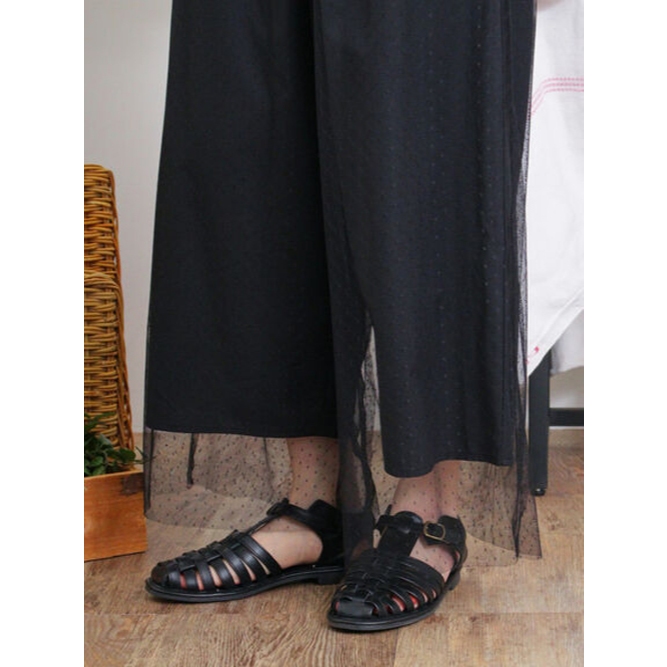 Samansa Mos2 質感分層薄紗鬆緊腰寬褲(FL46L0F2380)象牙色F|灰色F|黑色FPantsearth music&ecology Select Store