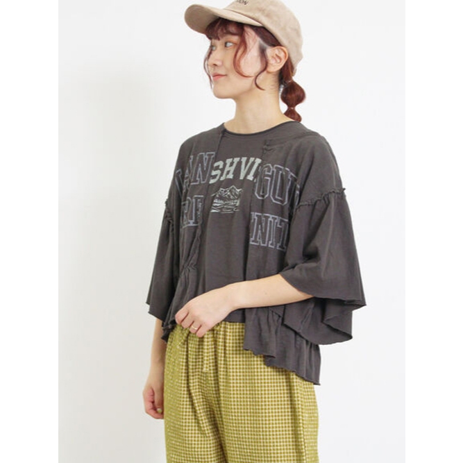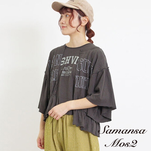 Samansa Mos2 不對稱拼接抓摺英文標誌印花上衣(FL43L1C0380)黃色F|紫色F|本白F|炭灰色FT-shirtsearth music&ecology Select Store