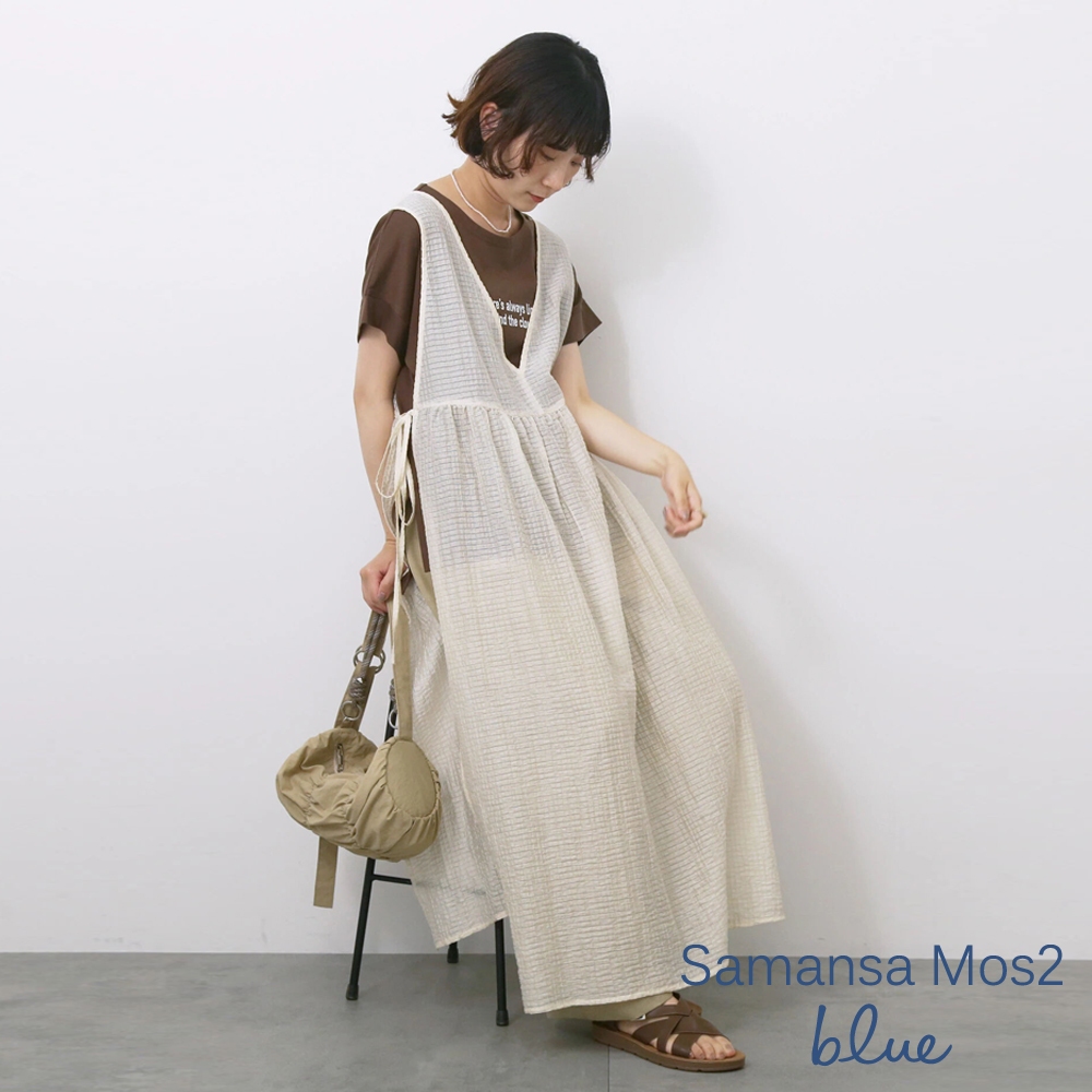 Samansa Mos2 blue 2WAY前後兩穿深V領兩側開岔無袖洋裝(0F001011710)象牙色F|灰色F|黑色Fearth music&ecology Select Store