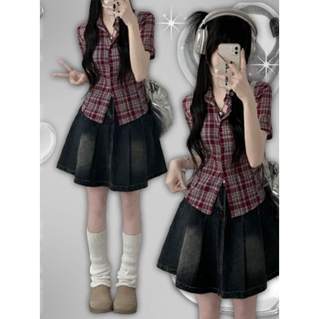 Codibook|韓國 ccomeng 格紋修身短袖襯衫[預購]短袖上衣 襯衫 女裝櫻桃粉,one size|卡其色,one size|海軍藍,one sizeT-shirtsCodibook 韓國女裝購物平台