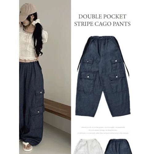 Codibook|韓國 peachmode 休閒多口袋寬鬆工裝風綁帶牛仔褲[預購]長褲 工裝褲 女裝象牙白,FREE|深藍色,FREEPantsCodibook 韓國女裝購物平台