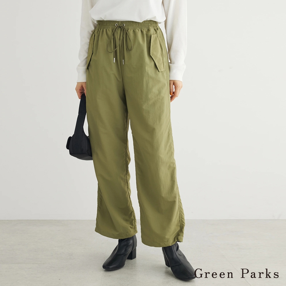 Green Parks 尼龍抽繩束口降落傘褲(6N41L0F0100)黑色F|卡其色FPantsearth music&ecology Select Store