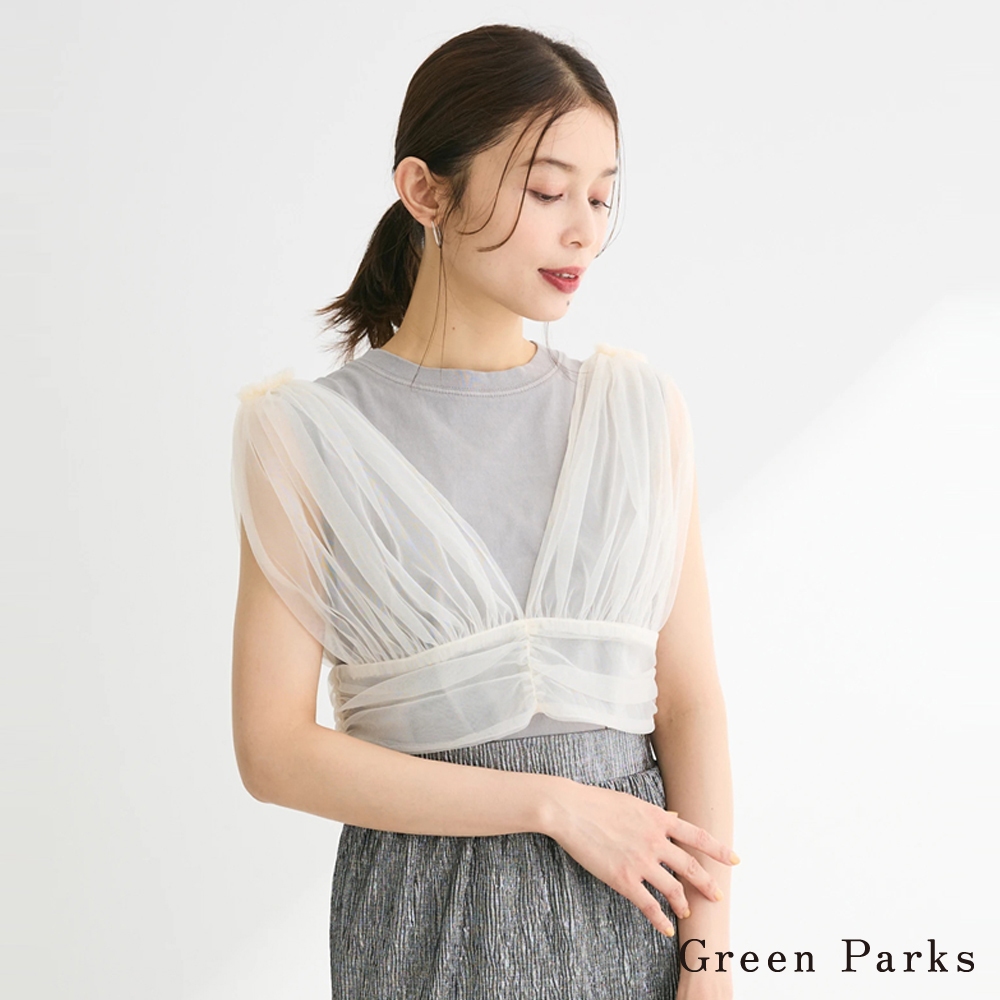 Green Parks 後背繫帶柔軟薄紗背心(6P43L0C0130)象牙色F|炭灰色F|黑色FTanks & Camisolesearth music&ecology Select Store