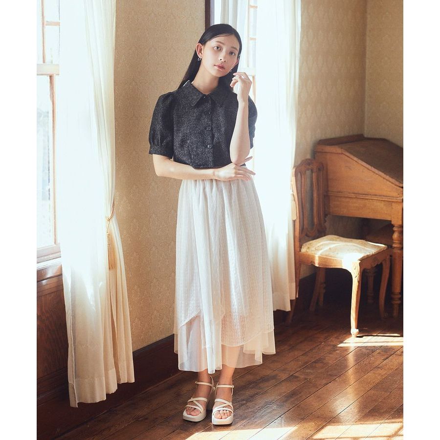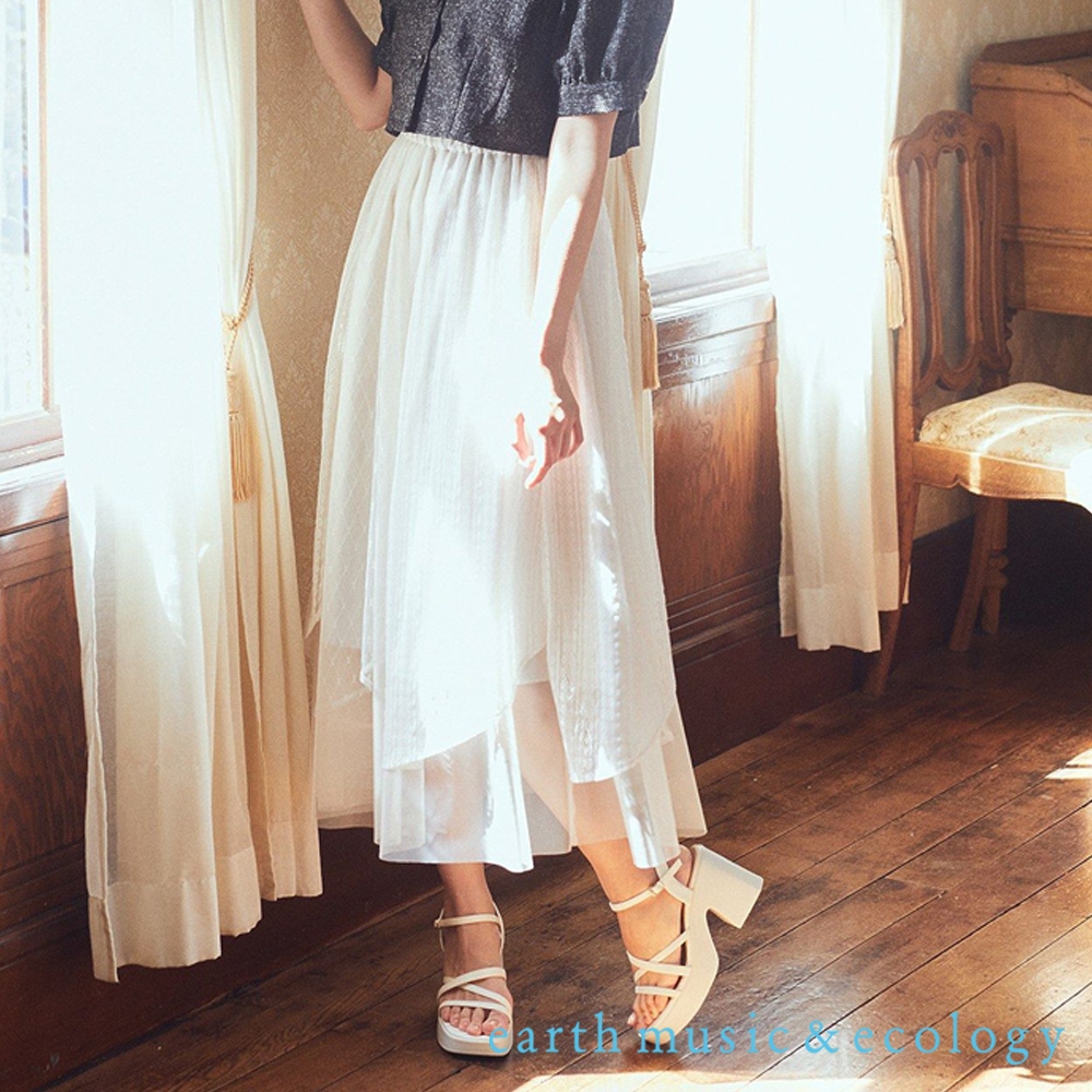 earth music&ecology 花朵格紋圖案層次蕾絲薄紗裙(01000332400)黑色F|象牙色F|灰色Fearth music&ecology Select Store