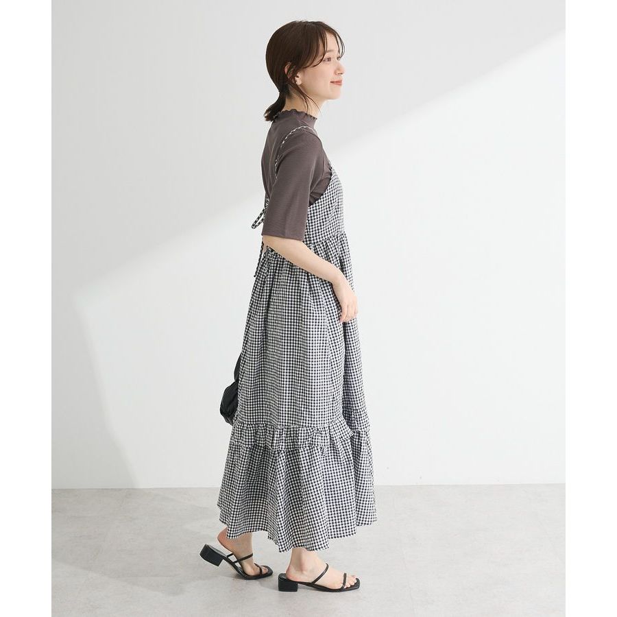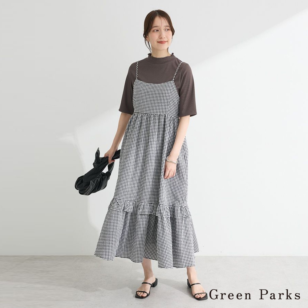 Green Parks 配色格紋荷葉拼接吊帶洋裝(06000525500)本白F|灰色F|炭灰色Fearth music&ecology Select Store