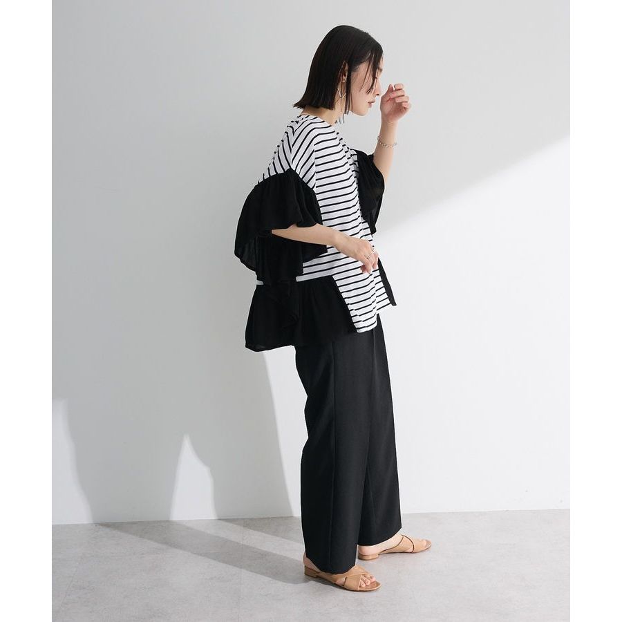 Green Parks 荷葉喇叭袖拼接特色上衣(06000222600)淡灰色F|黑色F|紅色F|綠色F|橫條紋FT-shirtsearth music&ecology Select Store