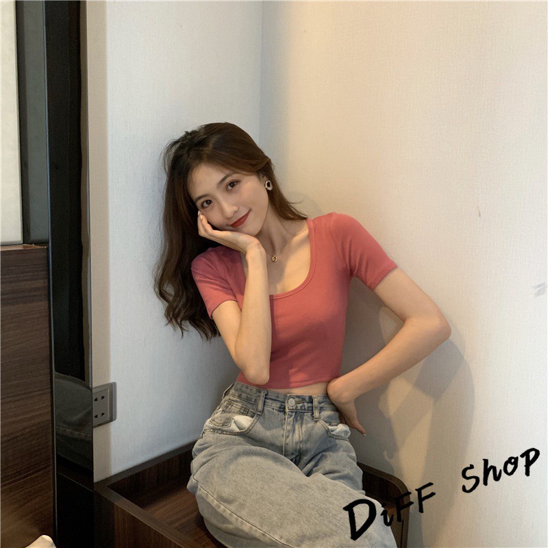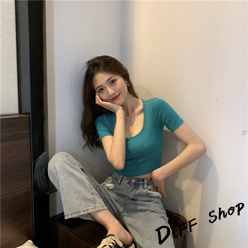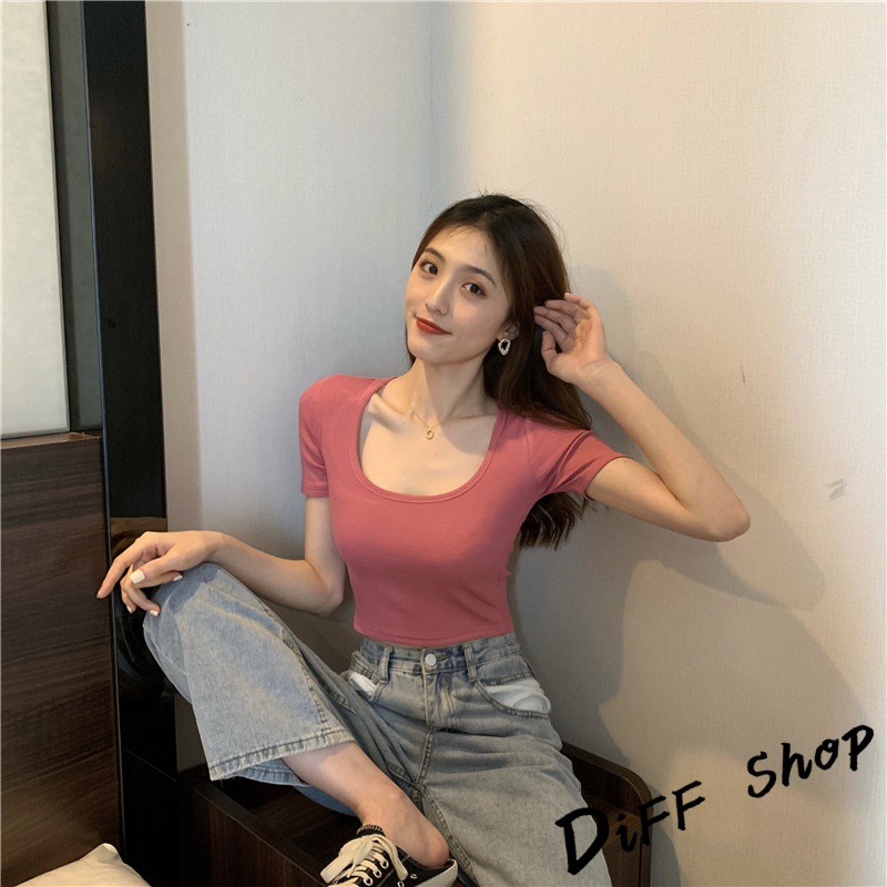 【DIFF】韓版彈性緊身顯瘦素色短袖上衣 短版上衣 短袖t恤 女裝 顯瘦上衣 衣服 寬鬆上衣 素T【T307】【T307】黑色|【T307】藍綠色|【T307】灰色|【T307】白色|【T307】粉色|【T307】橘色T-shirtsDiFF shop