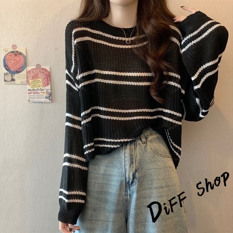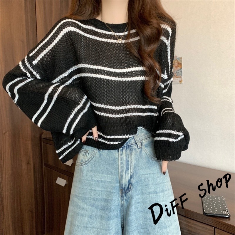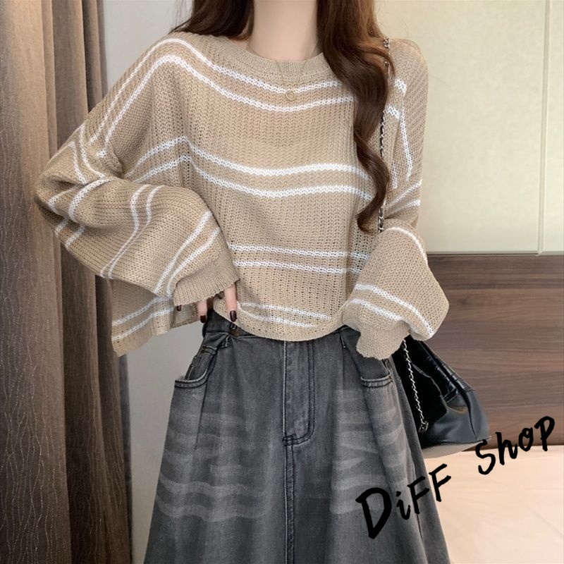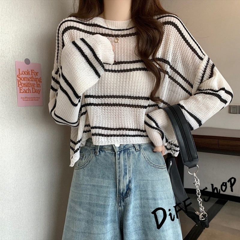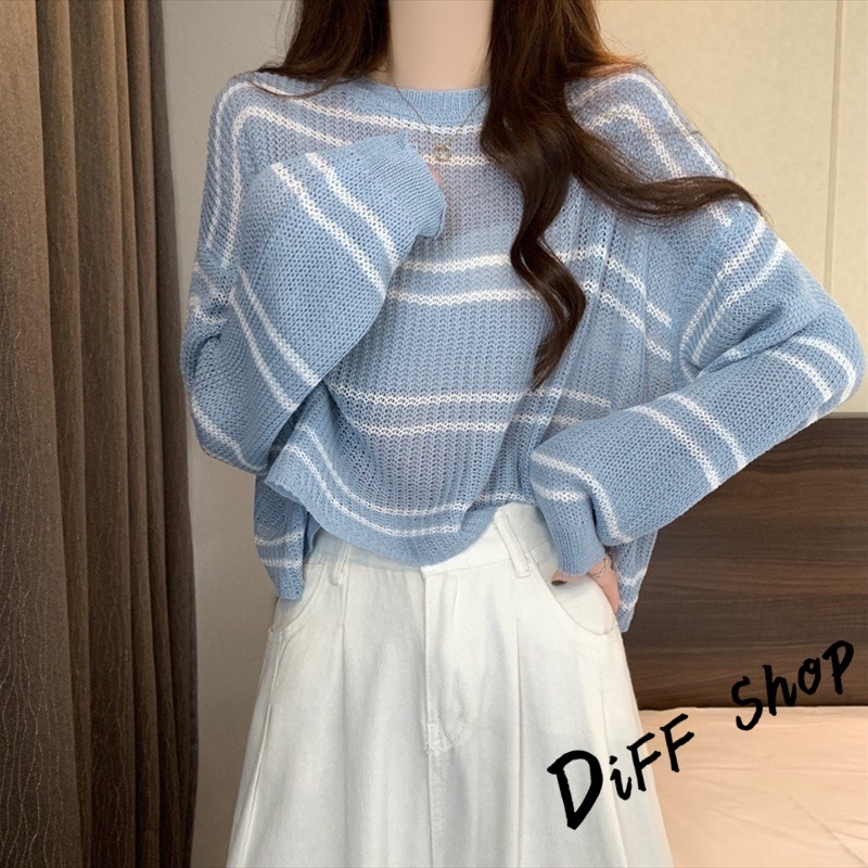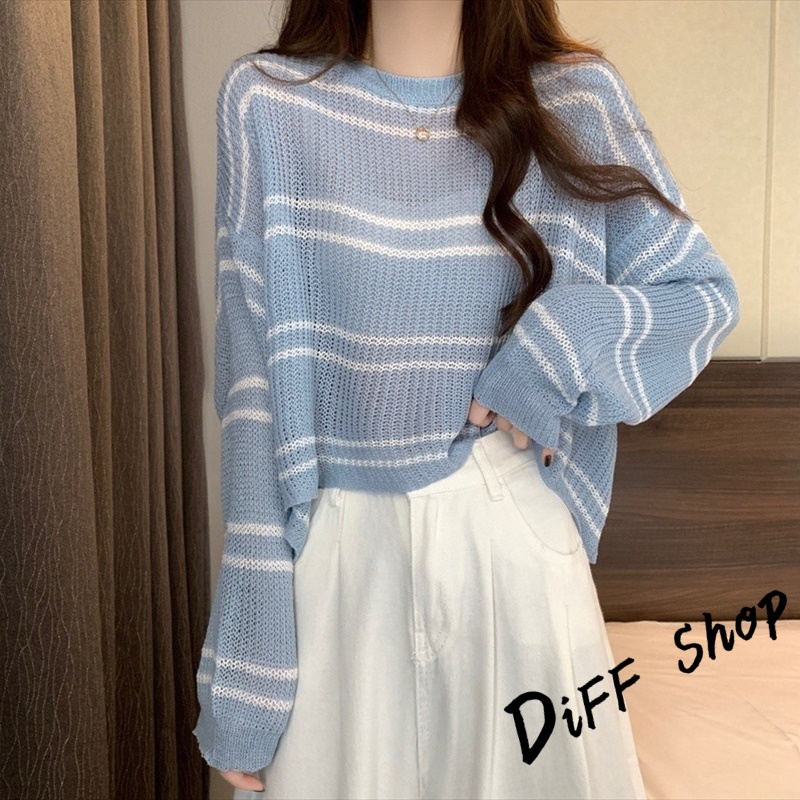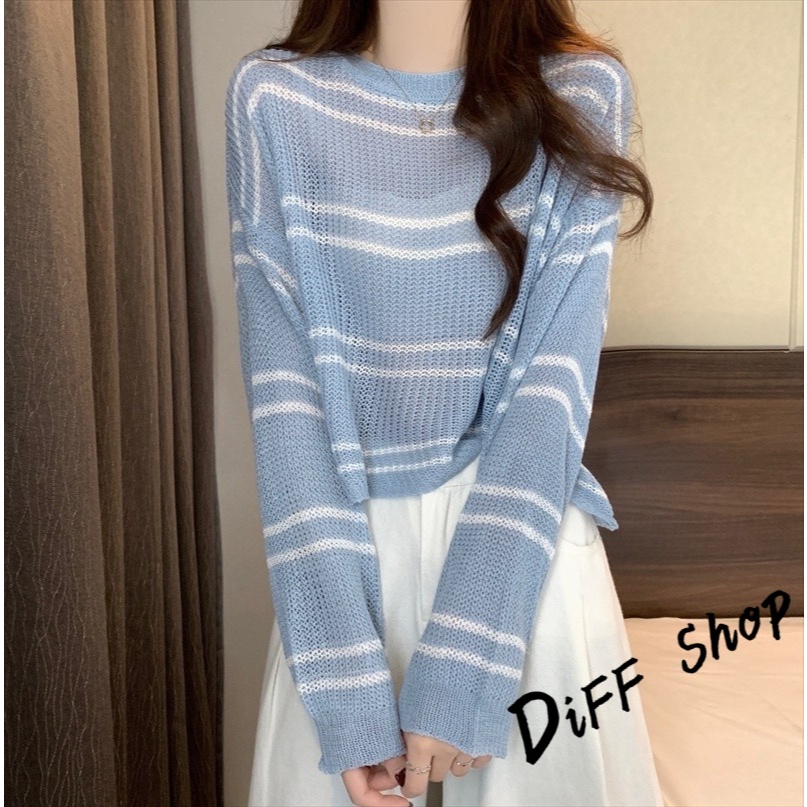 【DIFF】韓版薄款寬鬆百搭鏤空針織上衣 防曬上衣 短版罩衫 透膚罩衫 長袖上衣 女裝 衣服 長袖t恤【W403】【W403】白色|【W403】杏色|【W403】藍色|【W403】奶茶DiFF shop