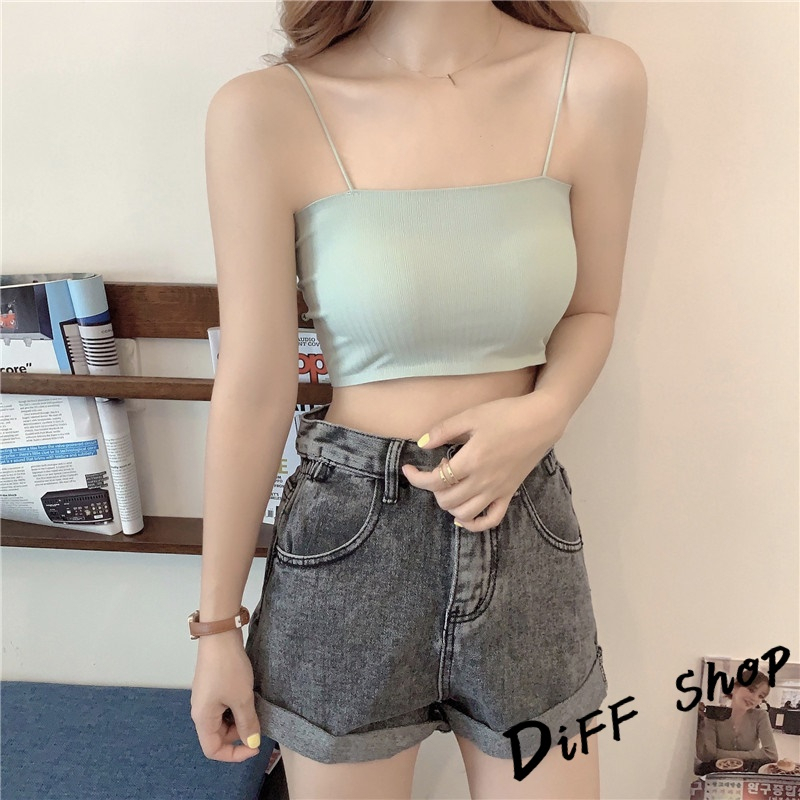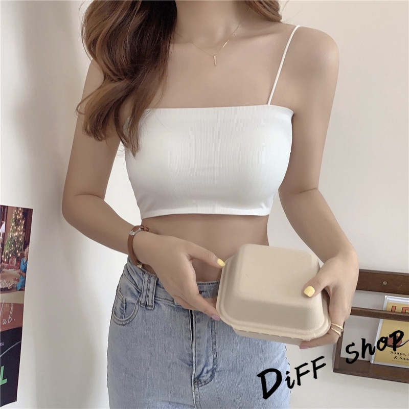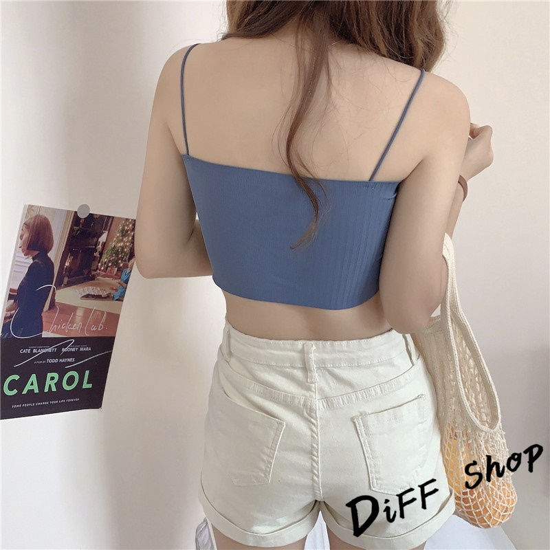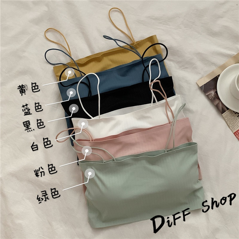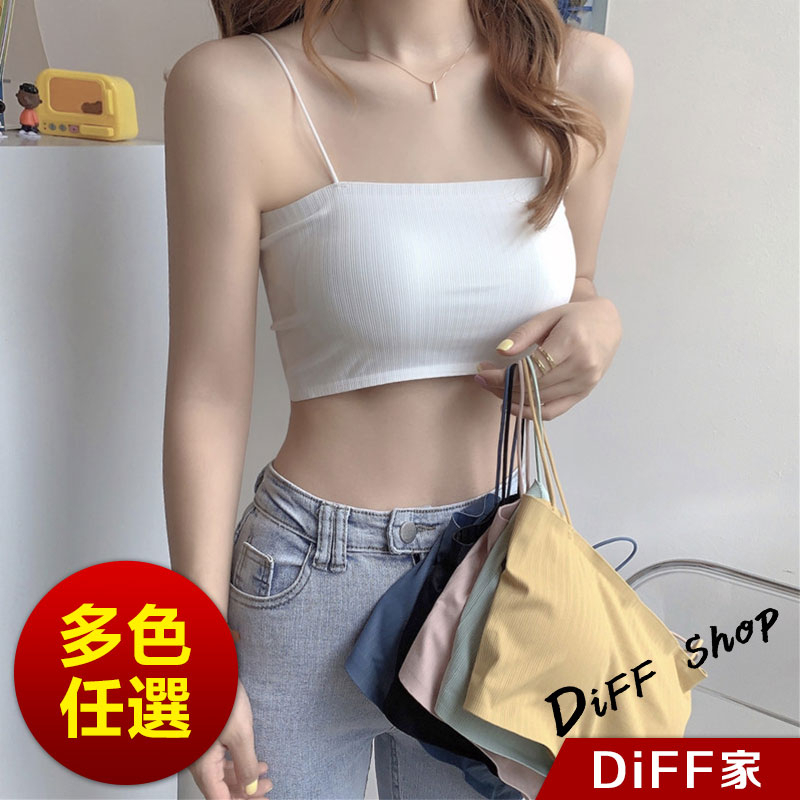 【DIFF】韓版短版涼感平口小可愛 帶胸墊免穿內衣 上衣 女裝 衣服 短版上衣 運動背心 短板【V201】【V201】白色|【V201】黃色|【V201】綠色|【V201】黑色|【V201】粉紅色|【V201】藍色Tanks & CamisolesDiFF shop