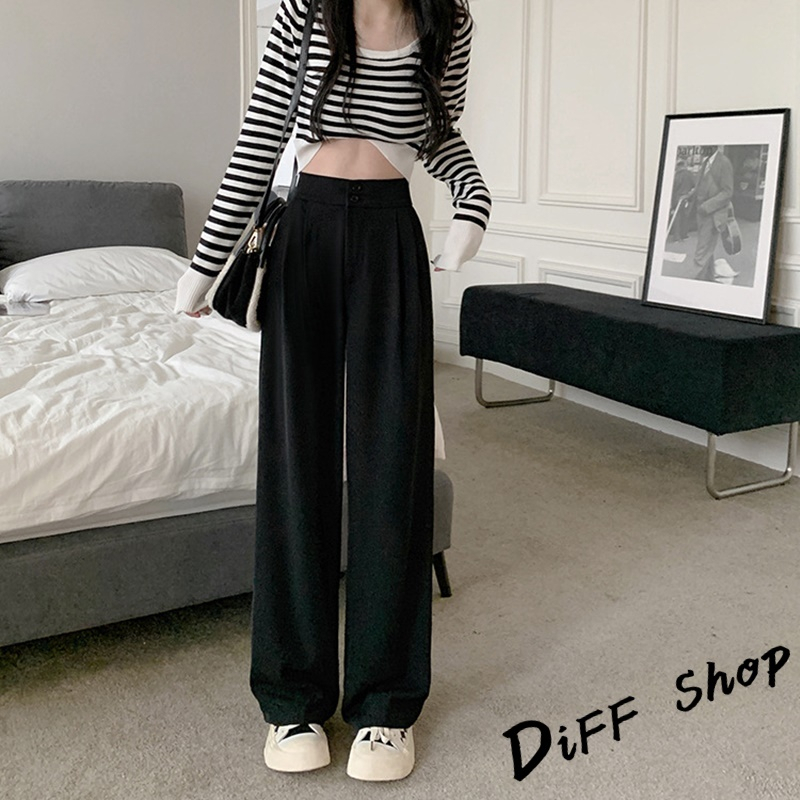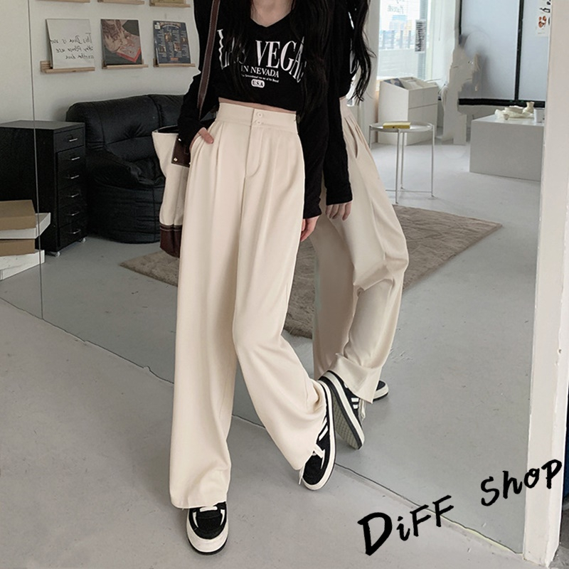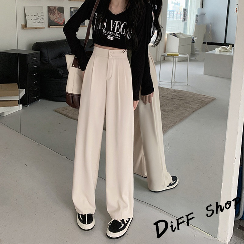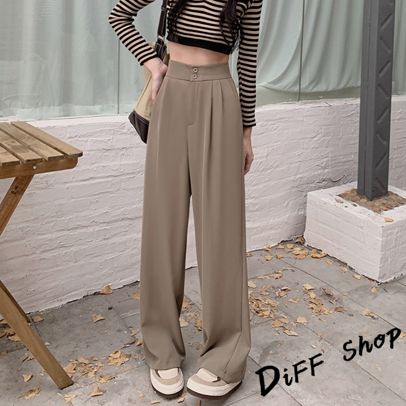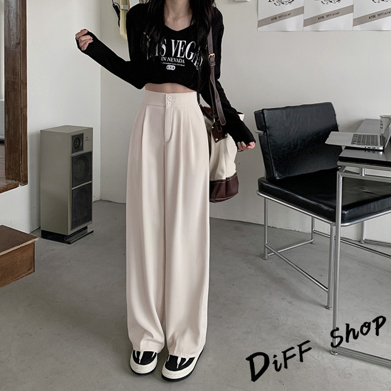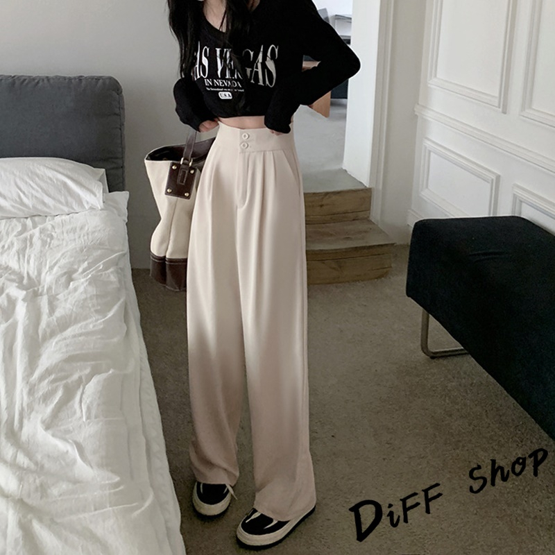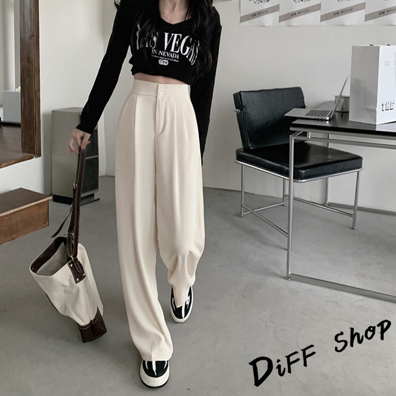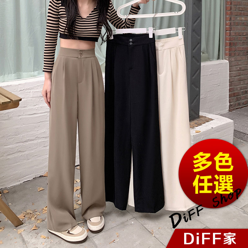 【DIFF】韓版雙扣高腰寬鬆顯瘦垂感休閒西裝褲 寬褲 褲子 長褲 休閒褲 女裝 高腰褲 拖地褲 直筒褲 黑褲【P263】【P263】米白L號|【P263】黑色M號|【P263】黑色L號|【P263】奶茶L號|【P263】米白M號|【P263】米白XL號|【P263】黑色XL號|【P263】奶茶M號|【P263】奶茶XL號|【P263】黑色S號|【P263】米白S號|【P263】奶茶S號PantsDiFF shop
