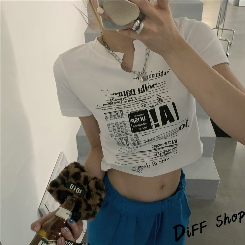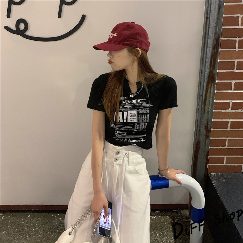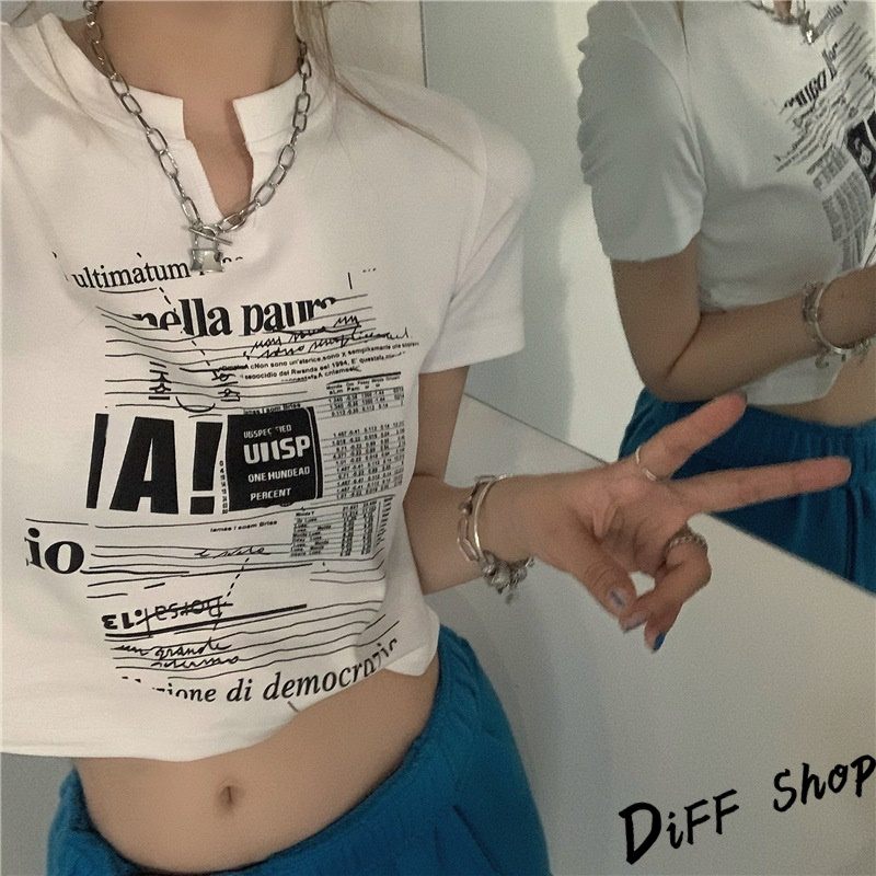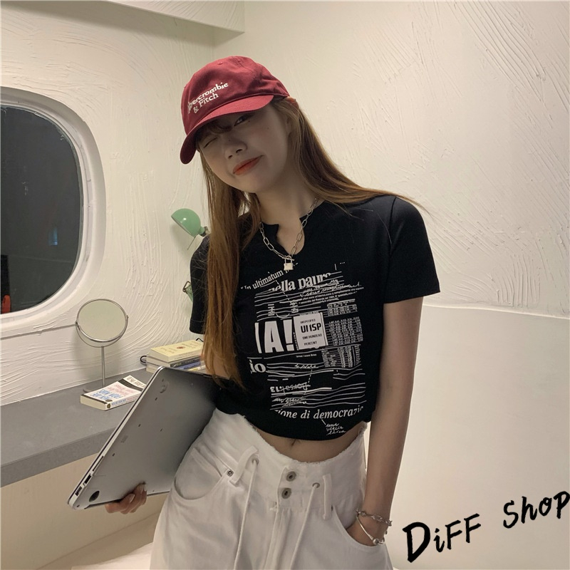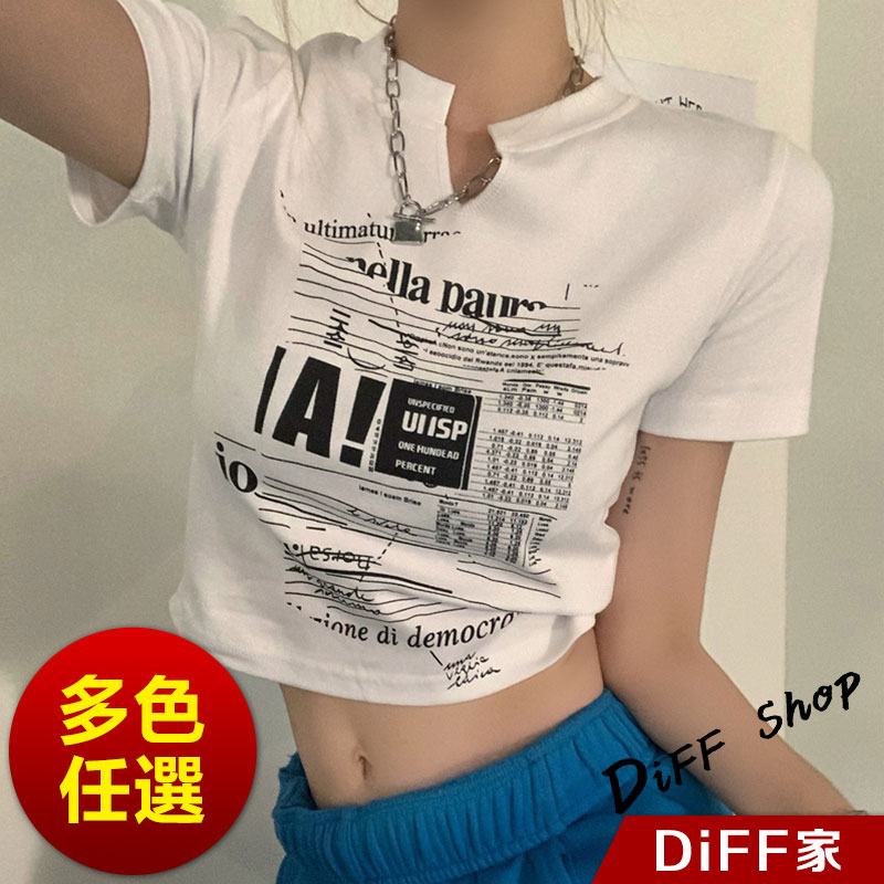【DIFF】韓版V領字母短版上衣 短袖上衣 短袖t恤 女裝 顯瘦上衣 衣服 寬鬆上衣 短板上衣【T562】【T562】黑色|【T562】白色T-shirtsDiFF shop