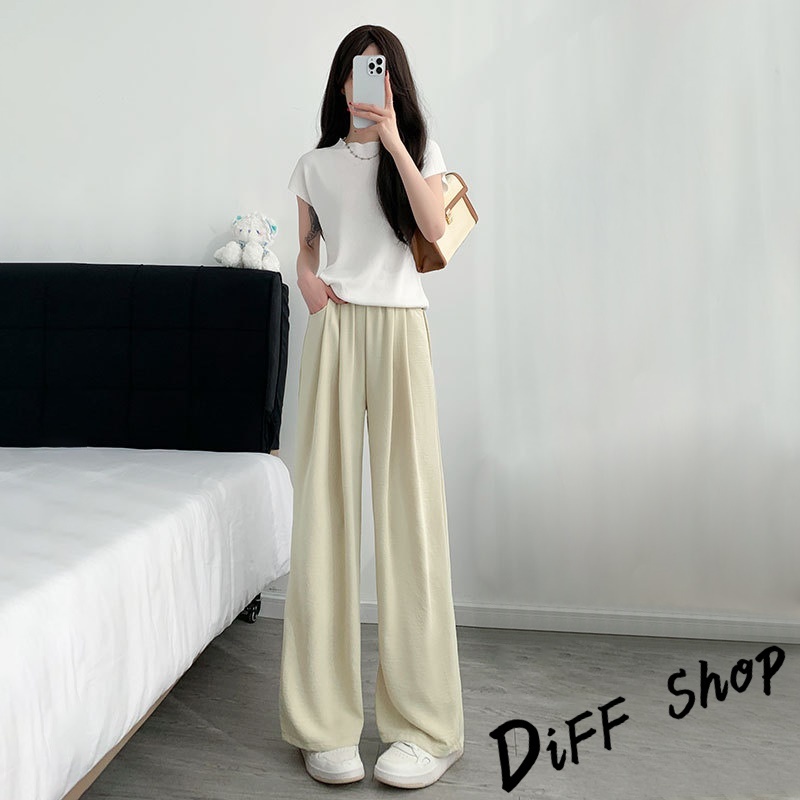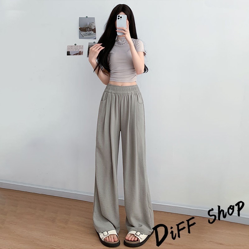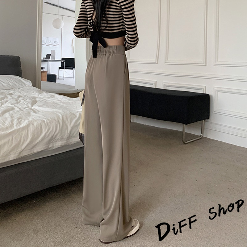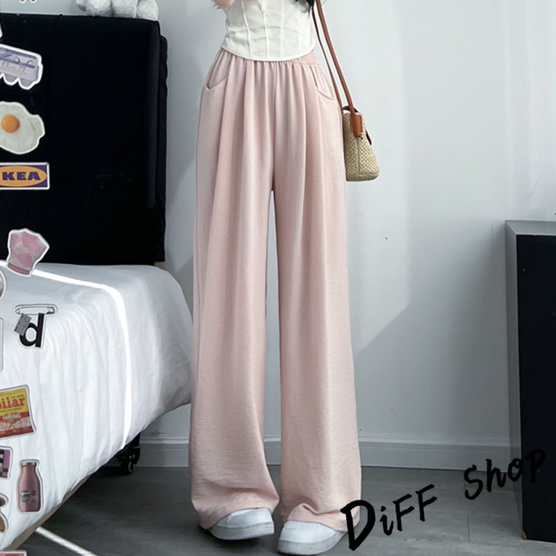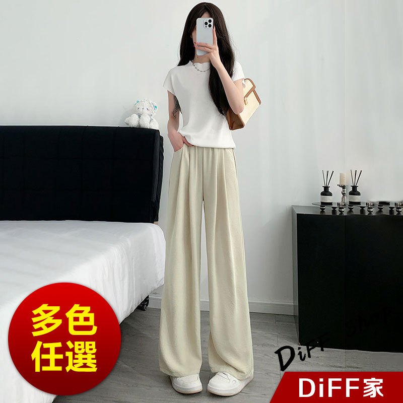 【DIFF】韓版冰絲高腰顯瘦垂感直筒寬褲 褲子 長褲 休閒褲 女裝 高腰褲 拖地褲 直筒褲 黑褲【P275】【P275】杏色|【P275】墨綠|【P275】深灰|【P275】粉色PantsDiFF shop