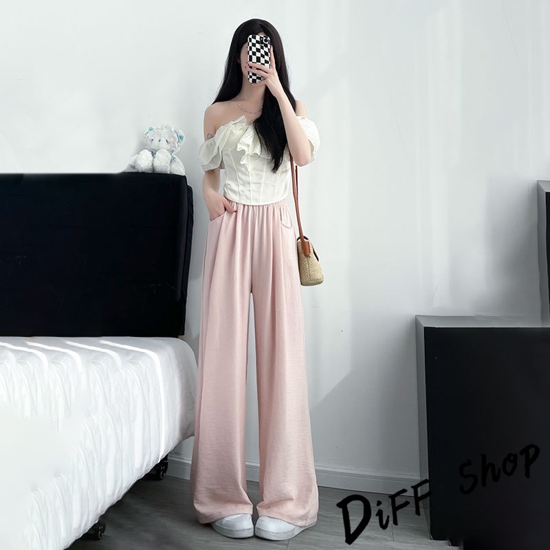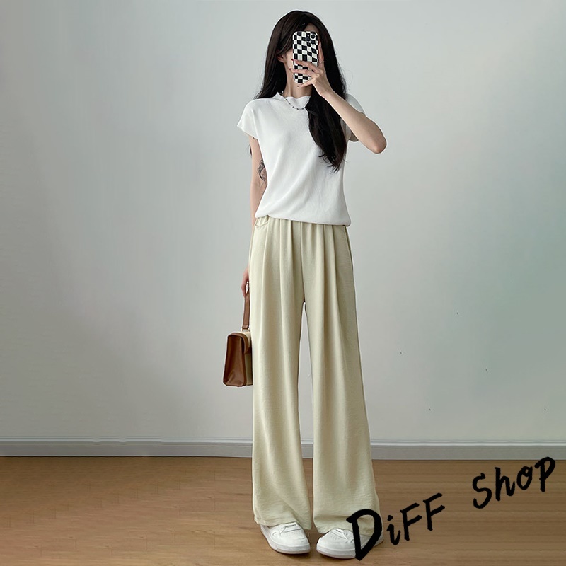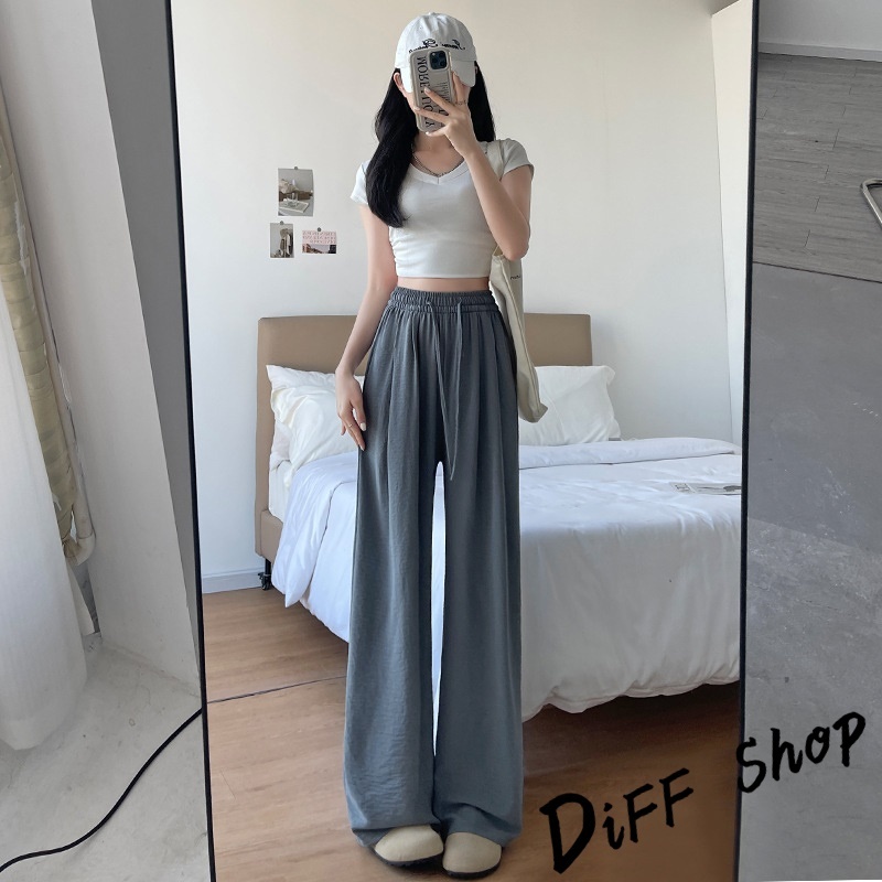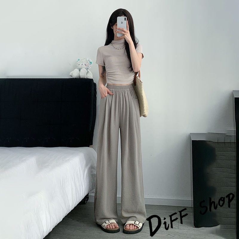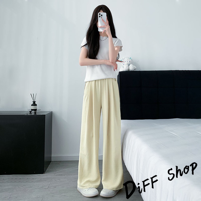 【DIFF】韓版冰絲高腰顯瘦垂感直筒寬褲 褲子 長褲 休閒褲 女裝 高腰褲 拖地褲 直筒褲 黑褲【P275】【P275】杏色|【P275】墨綠|【P275】深灰|【P275】粉色PantsDiFF shop