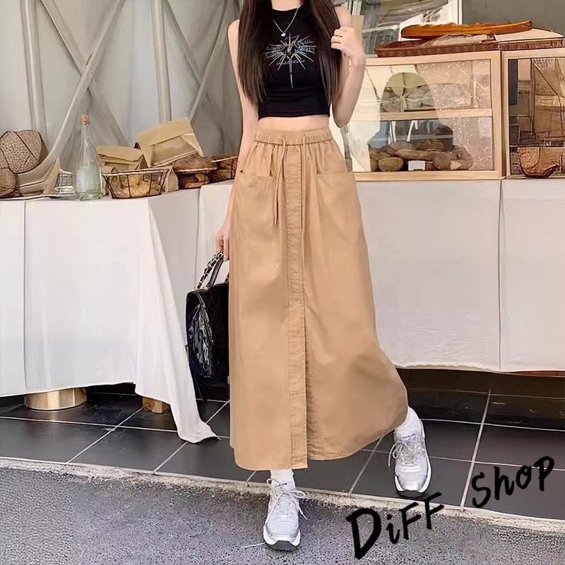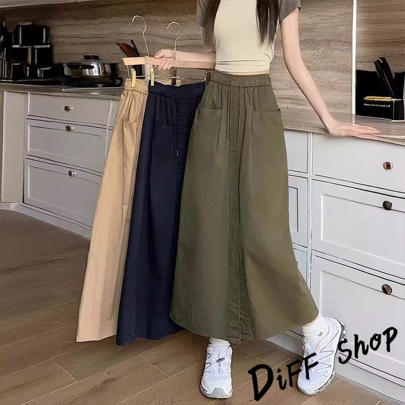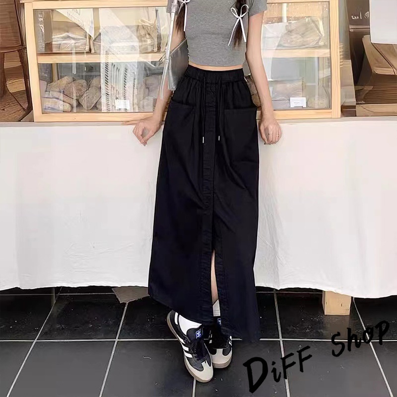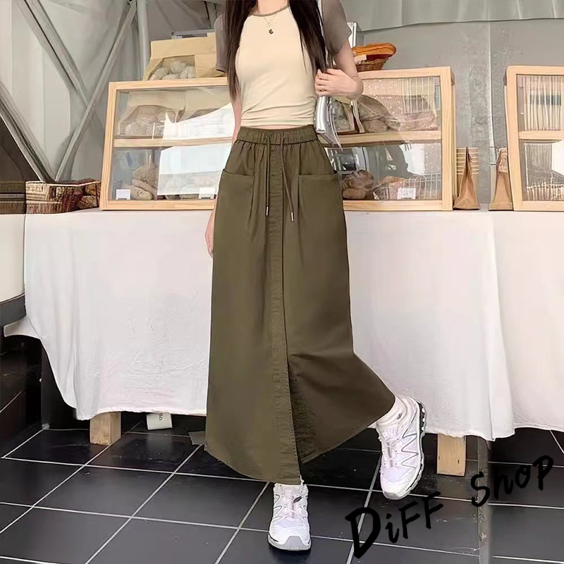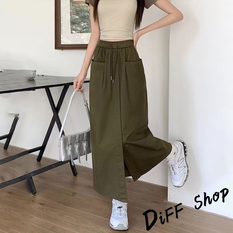 【DIFF】韓版寬鬆設計感開叉半身裙 工作褲 工裝褲 工裝裙 工作裙 長裙 裙子 女裝 衣服 長褲 褲子【P357】【P357】軍綠|【P357】黑色|【P357】卡其色DiFF shop