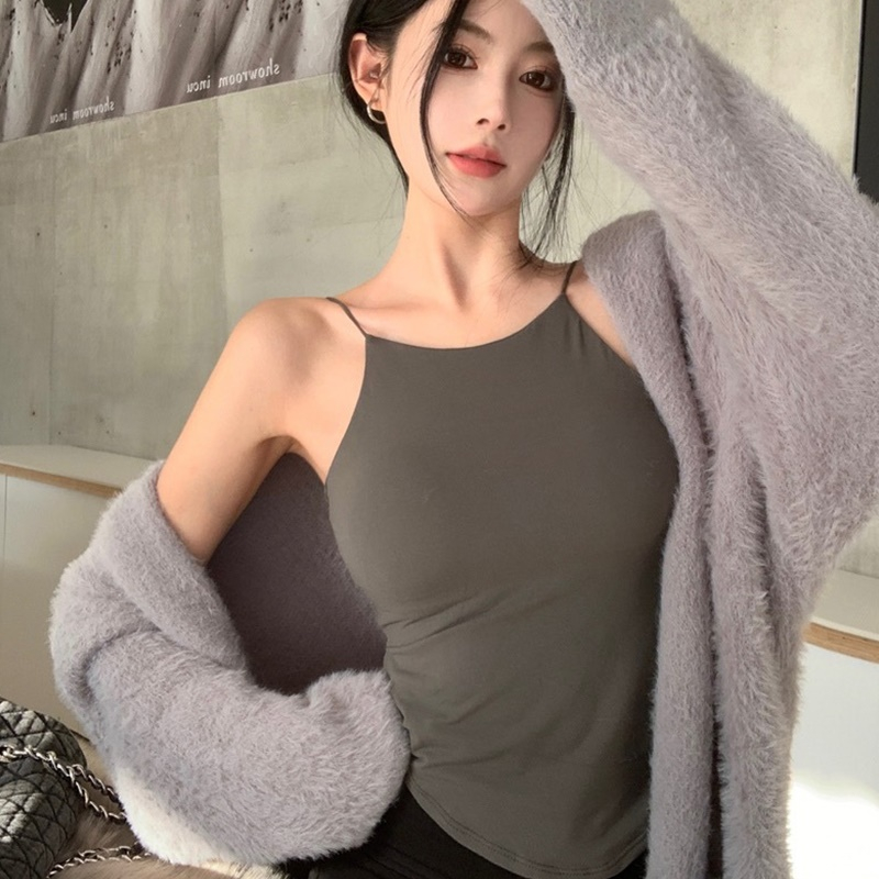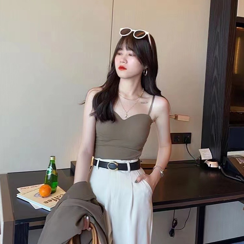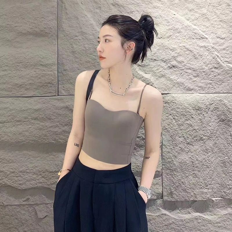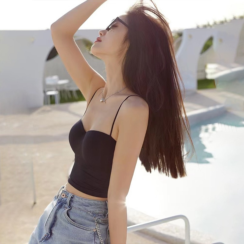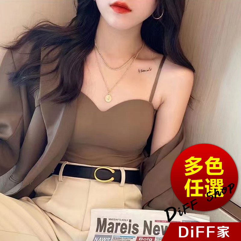 【DIFF】韓版冰絲一字肩V領美背短版背心 帶胸墊免穿內衣 上衣 小可愛 女裝 衣服 短版上衣 短板上衣【V259】【V259】白色|【V259】黑色|【V259】灰色|【V259】咖啡色Tanks & CamisolesDiFF shop
