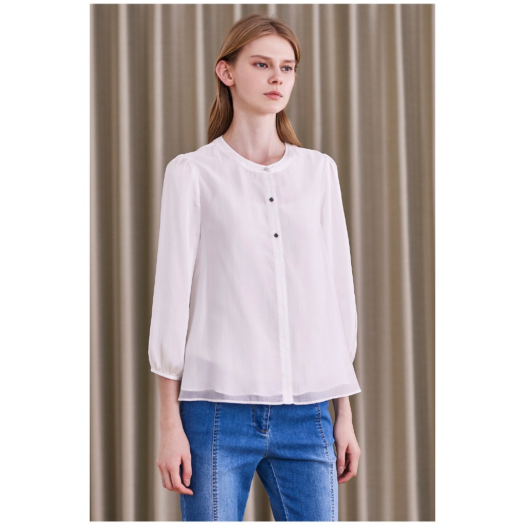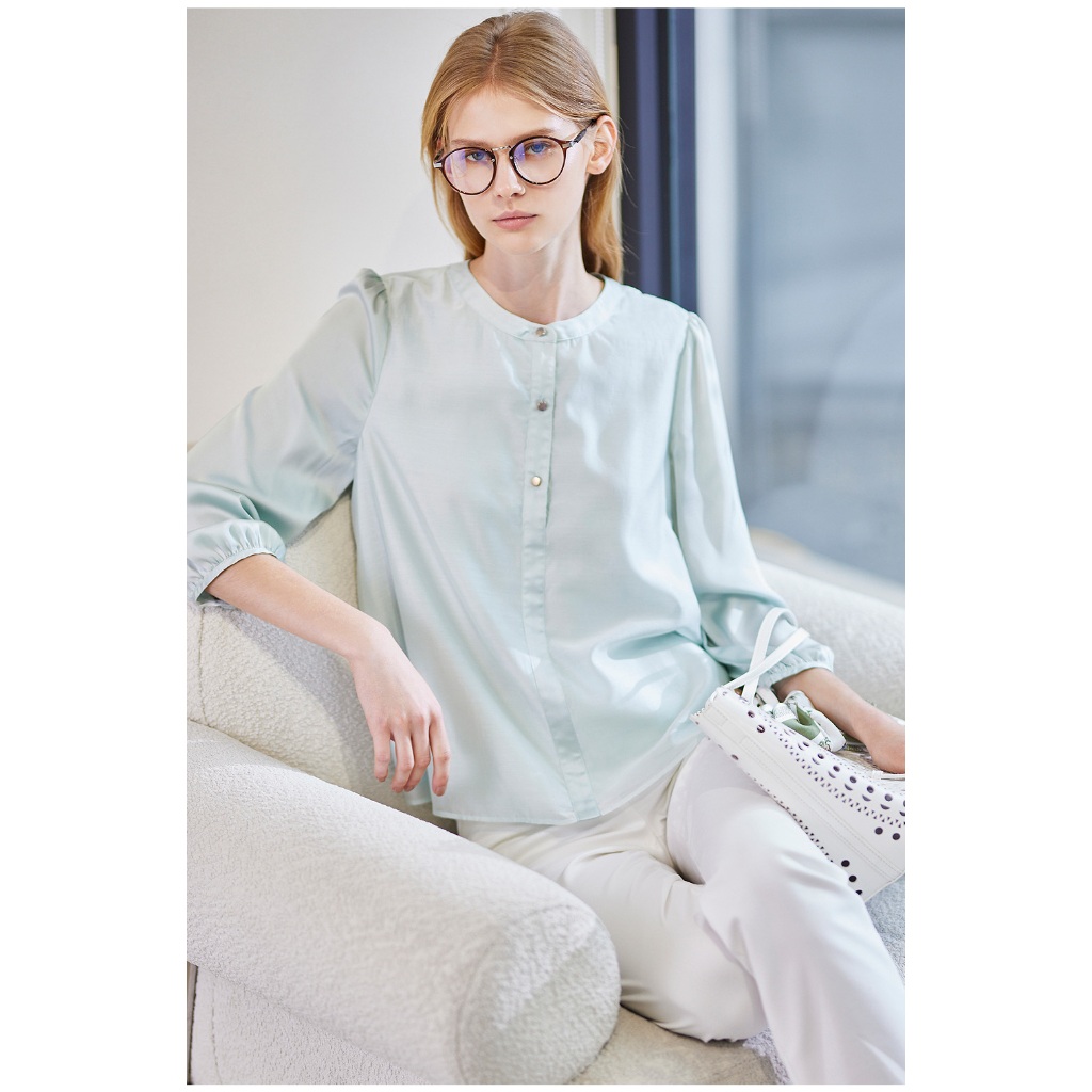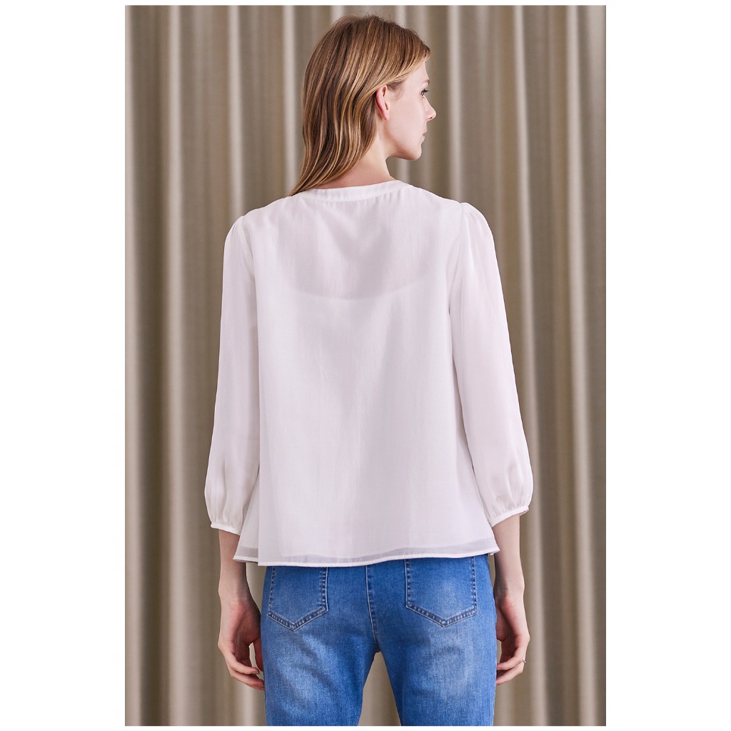 【en-suey 銀穗】清透光澤雙層感開襟上衣 – 白/淺綠 5113-2104