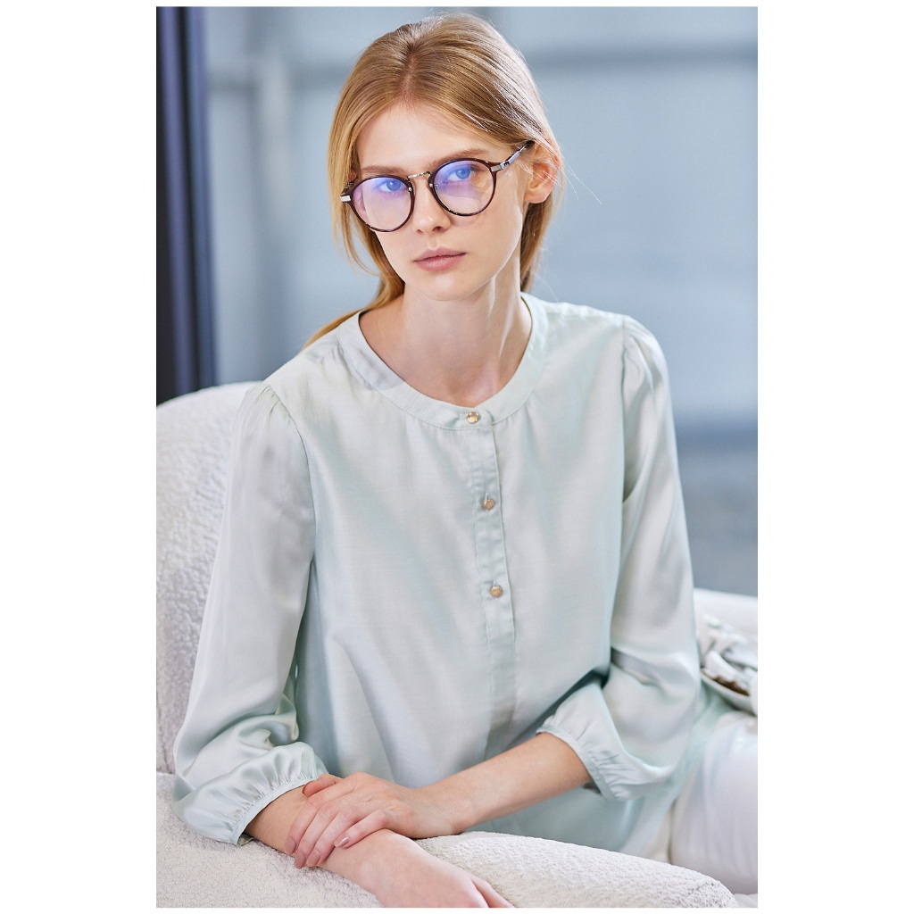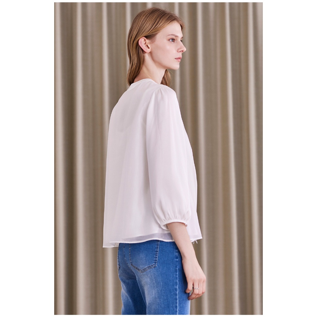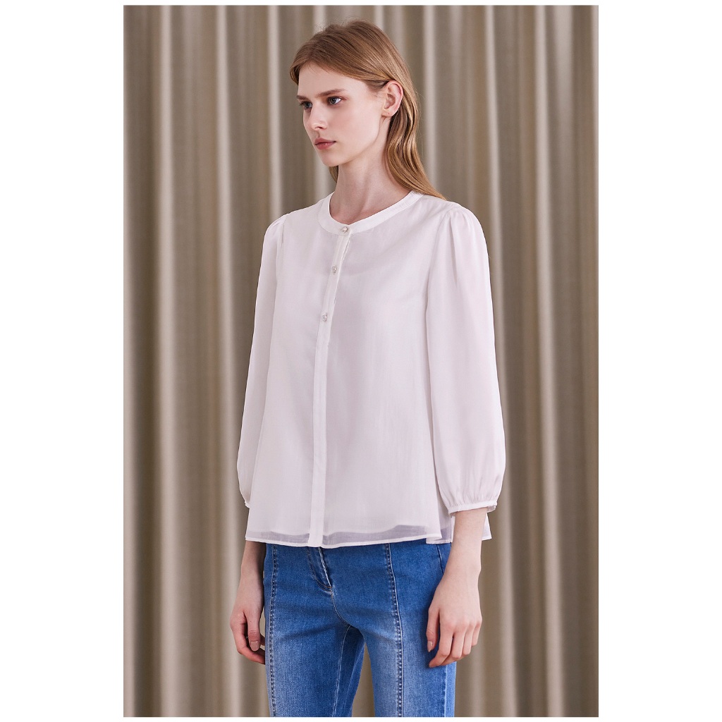 【en-suey 銀穗】清透光澤雙層感開襟上衣 – 白/淺綠 5113-2104