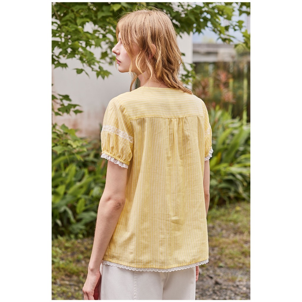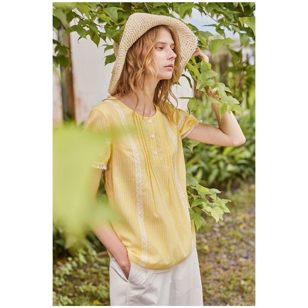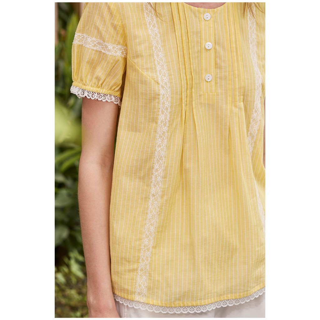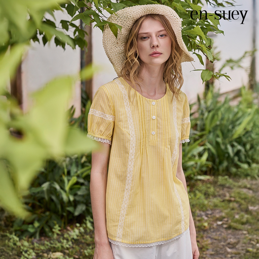 【en-suey 銀穗】蕾絲條紋薄棉拋袖上衣 – 黃 5213-1115黃,M|黃,L|黃,XLOthersen-suey 銀穗
