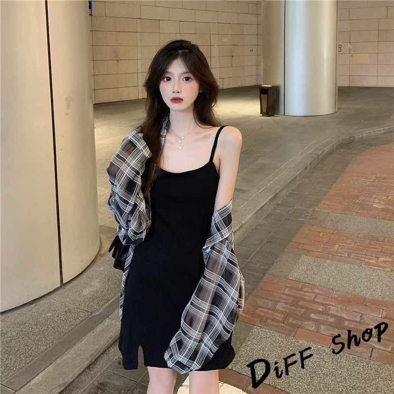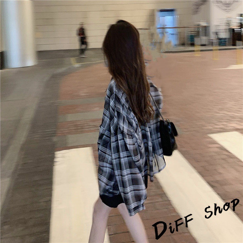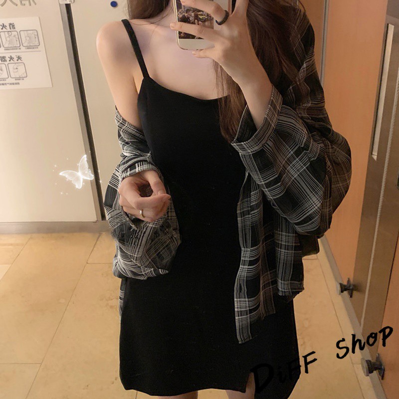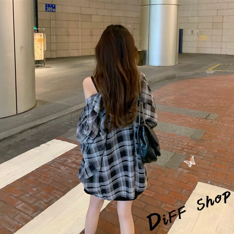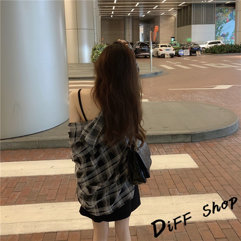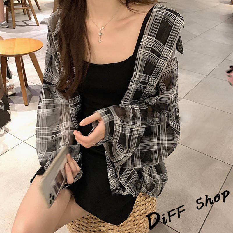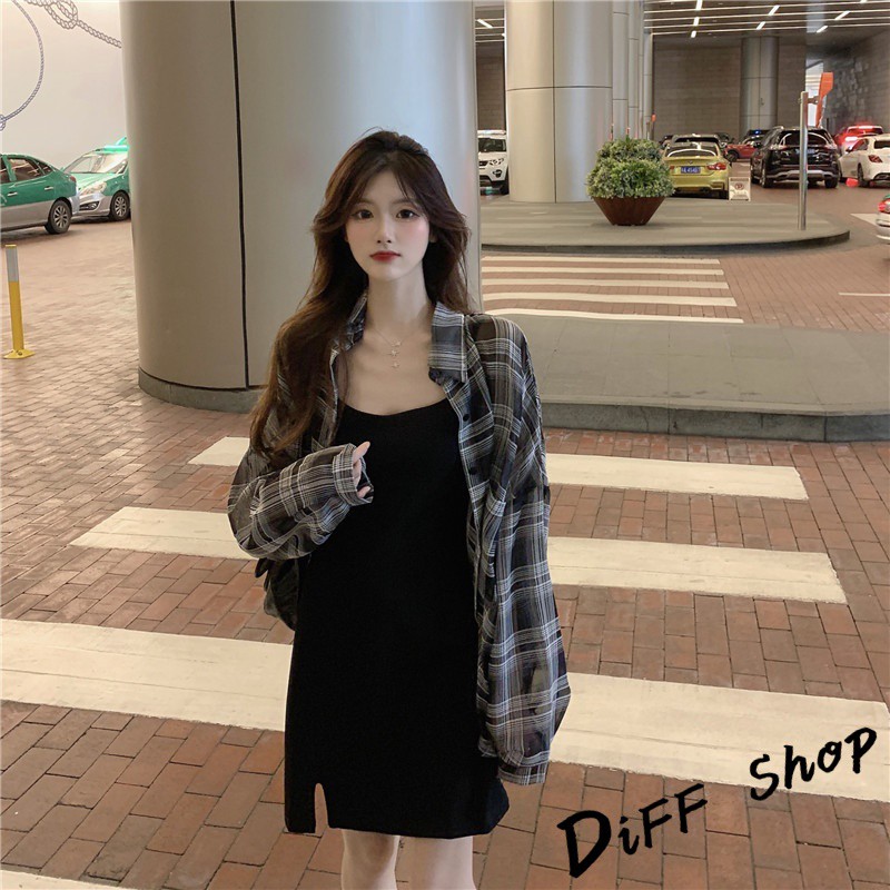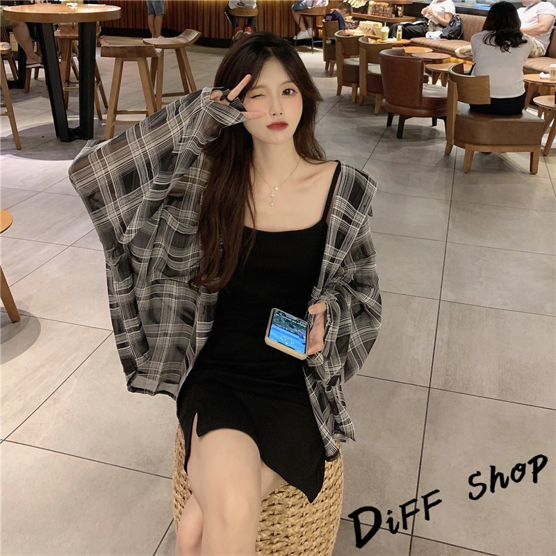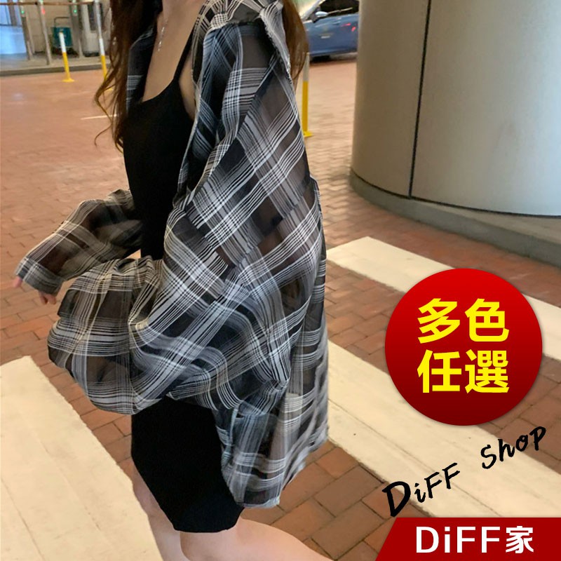 【DIFF】韓版慵懶風寬鬆格子外套 外套 襯衫 百搭外套 上衣 女裝 衣服 薄外套 罩衫 防曬外套 長版外套【J161】【J161】黑色外套|【J161】黑色吊帶裙Shirts & BlousesDiFF shop