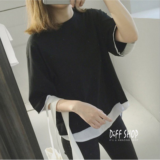 【DIFF】韓版夏季個性假兩件短袖t恤 寬鬆素色上衣 短袖上衣 衣服 女裝 素T【T121】