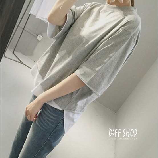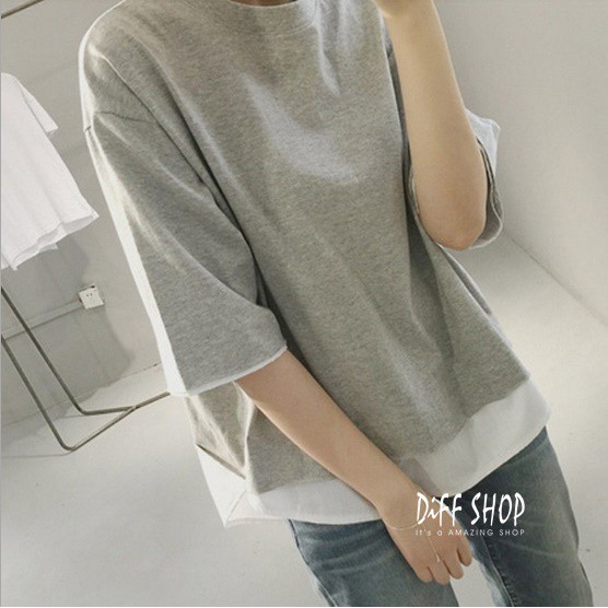 【DIFF】韓版夏季個性假兩件短袖t恤 寬鬆素色上衣 短袖上衣 衣服 女裝 素T【T121】【T121】黑色|【T121】灰色T-shirtsDiFF shop