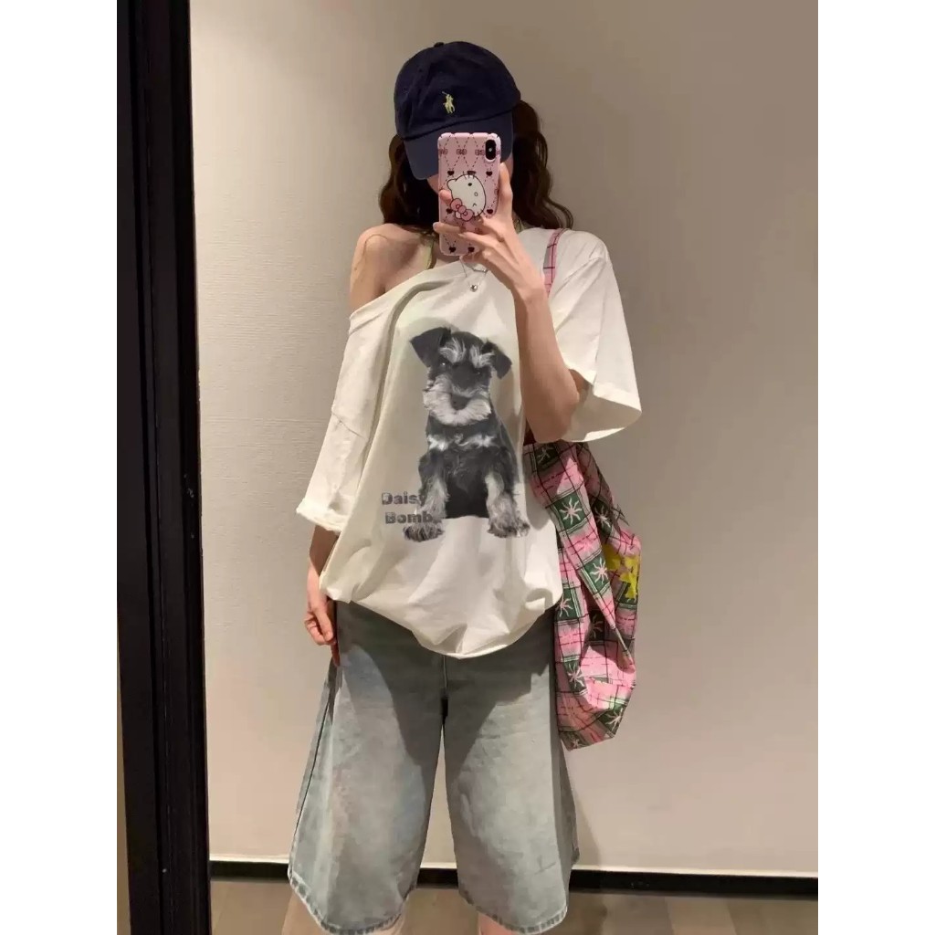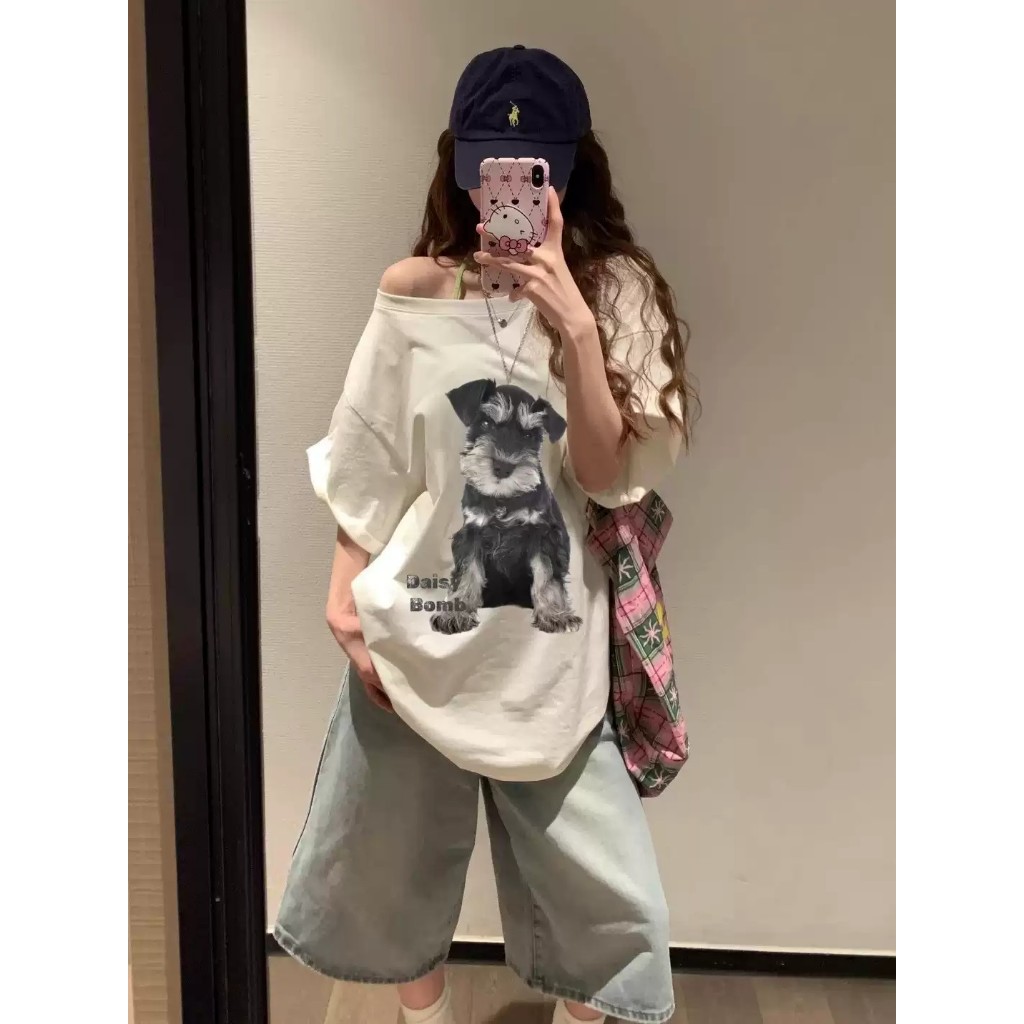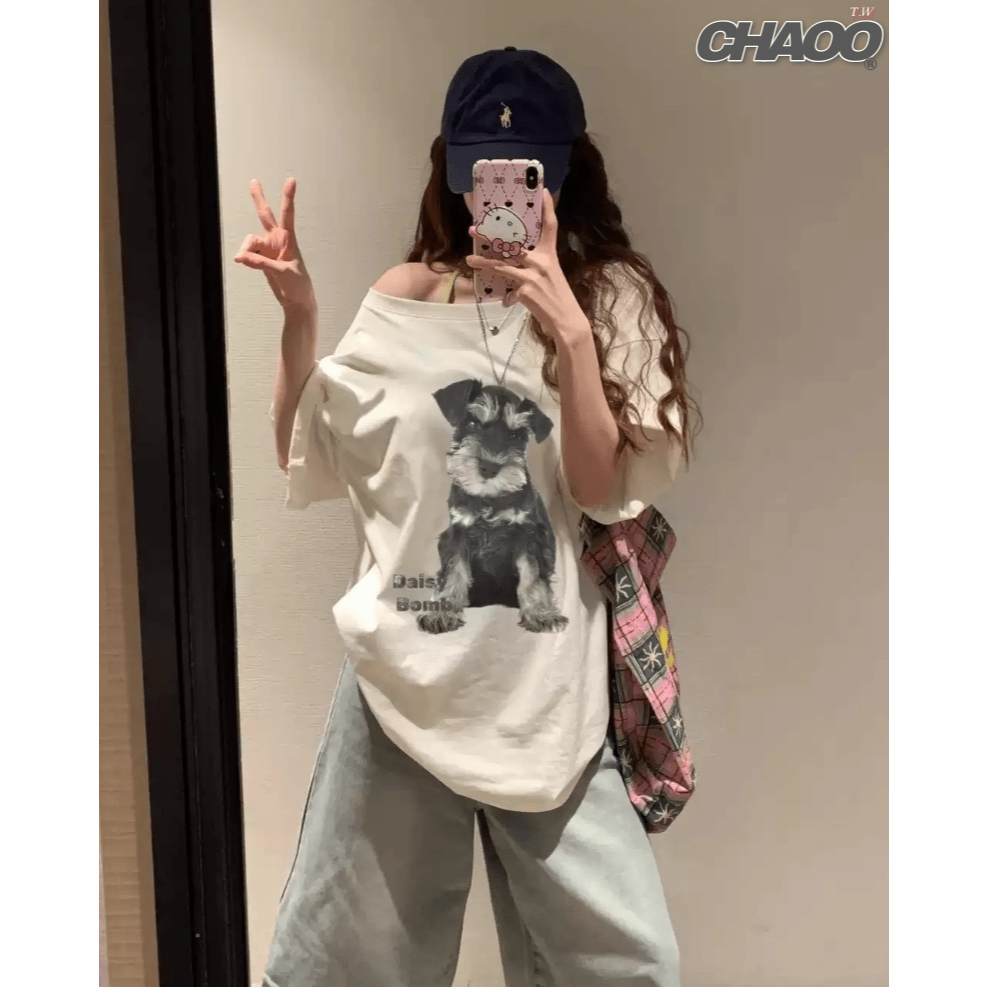 韓系chic斜肩 t恤 一字領上衣 露肩t恤 小狗印花 白色 t恤 女生短袖 辣妹上衣 短袖t恤 顯瘦穿搭 甜辣風 夏天白色,S|白色,M|白色,L|白色【優質版】,S|白色【優質版】,M|白色【優質版】,L|淺灰,S|淺灰,M|淺灰,L|淺灰【優質版】,S|淺灰【優質版】,M|淺灰【優質版】,LT-shirtsCHAOO 台北原創服飾品牌
