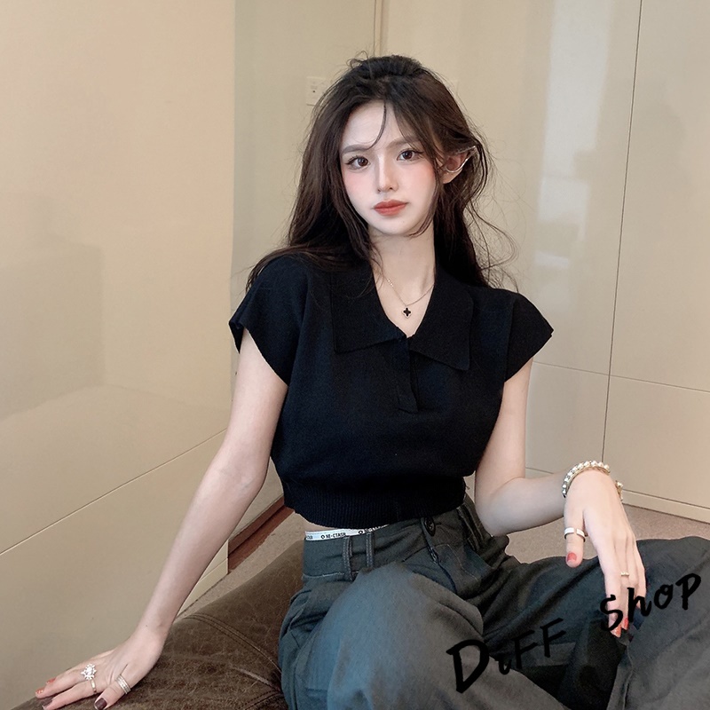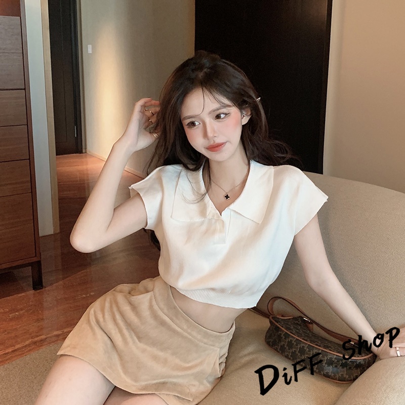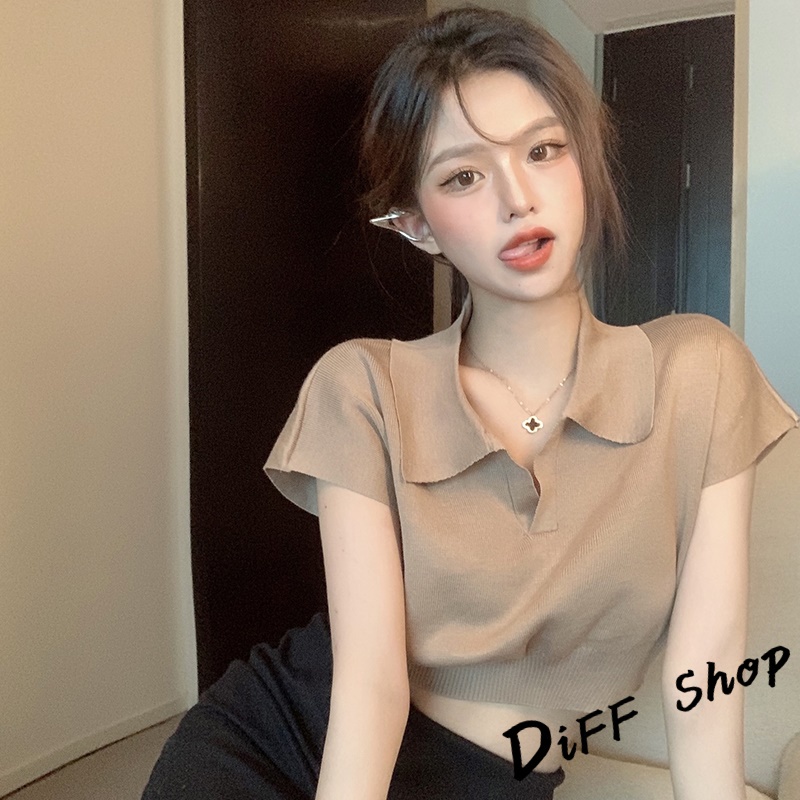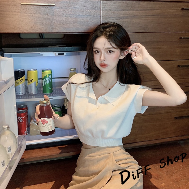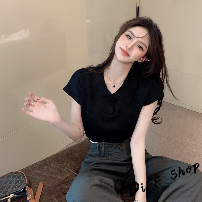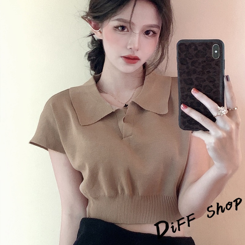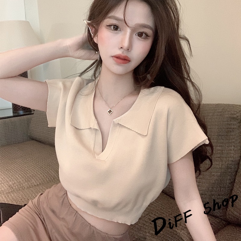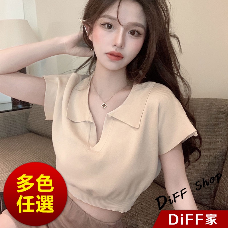 【DIFF】韓版簡約翻領休閒百搭短版上衣 短袖上衣 短袖t恤 女裝 顯瘦上衣 衣服 襯衫 素T 短板上衣【T391】【T391】杏色|【T391】奶茶|【T391】黑色|【T391】白色T-shirtsDiFF shop