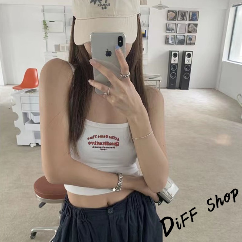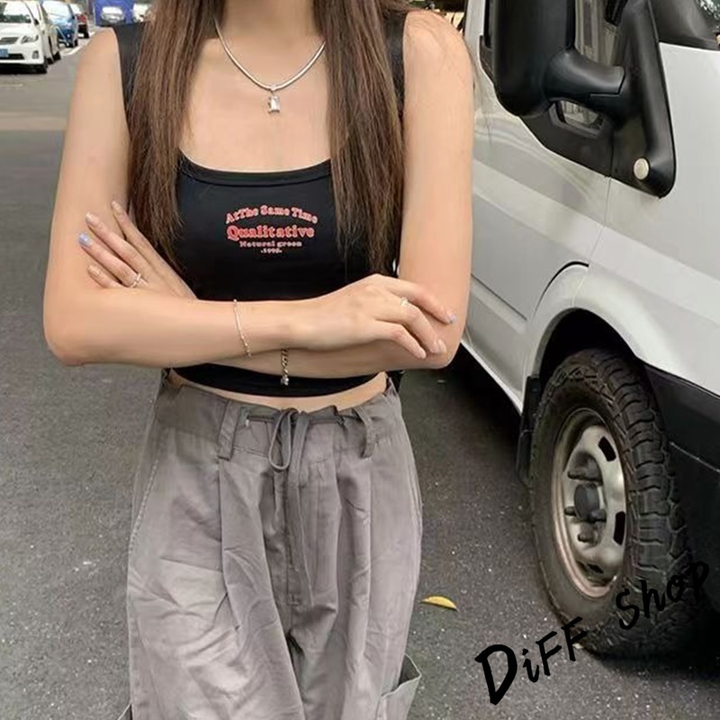 【DIFF】韓版美式字母吊帶背心 帶胸墊免穿內衣 小可愛 女裝 衣服 短版上衣 小背心 夏天女裝 運動背心【V340】