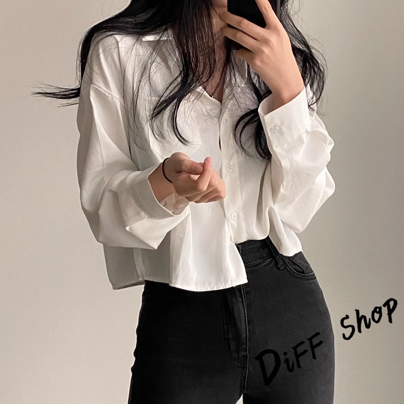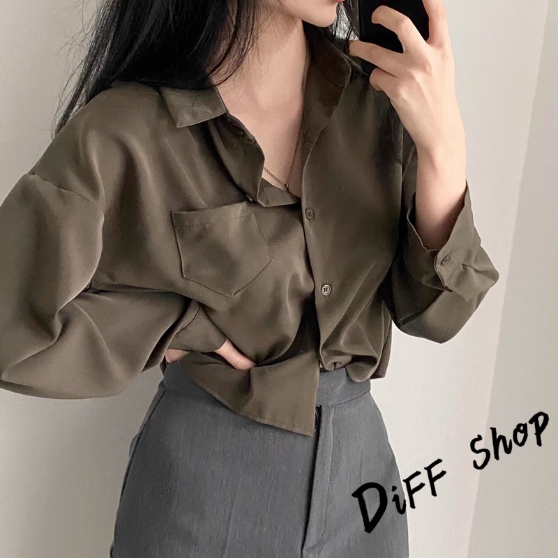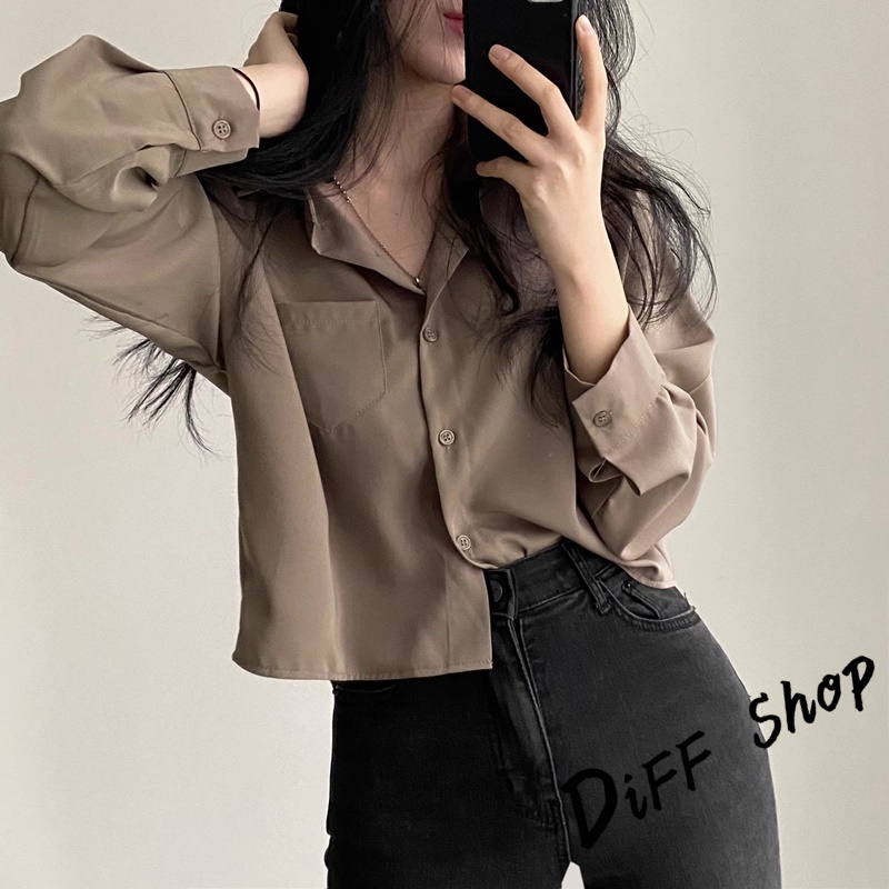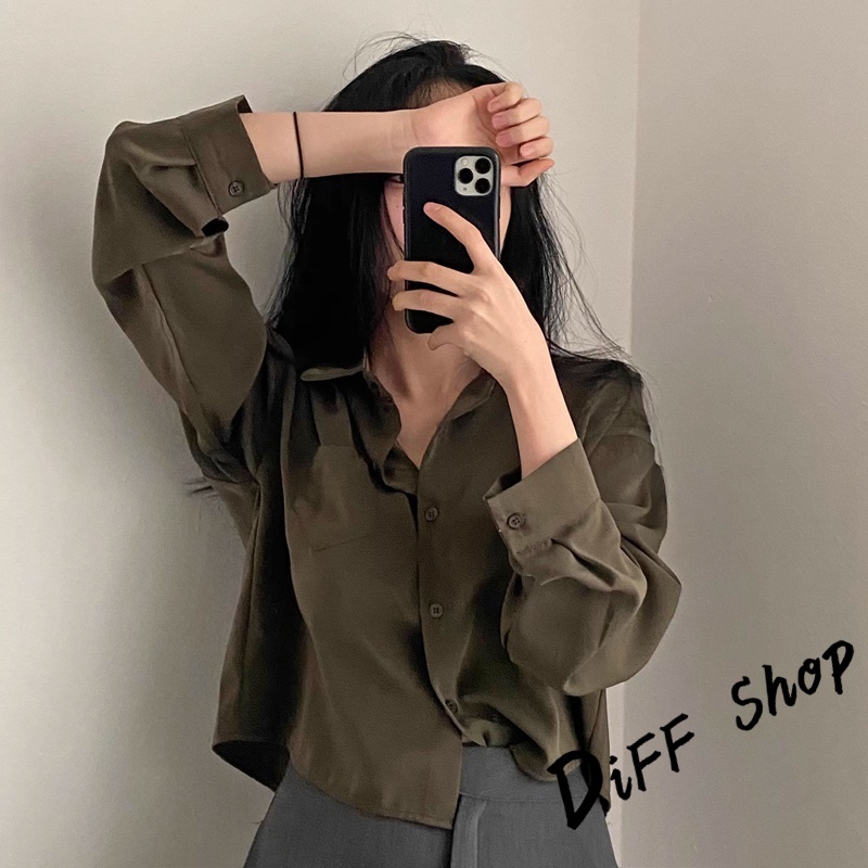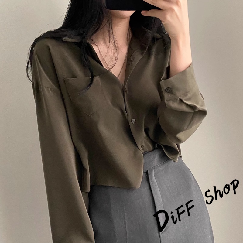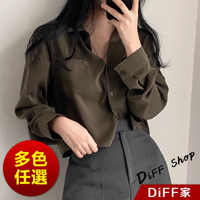 【DIFF】韓版翻領設計感小眾單排扣襯衫 短版上衣 衣 女裝 衣服 薄外套 罩衫 防曬外套 小外套 短版外套【J355】【J355】軍綠|【J355】白色|【J355】棕色JacketsDiFF shop