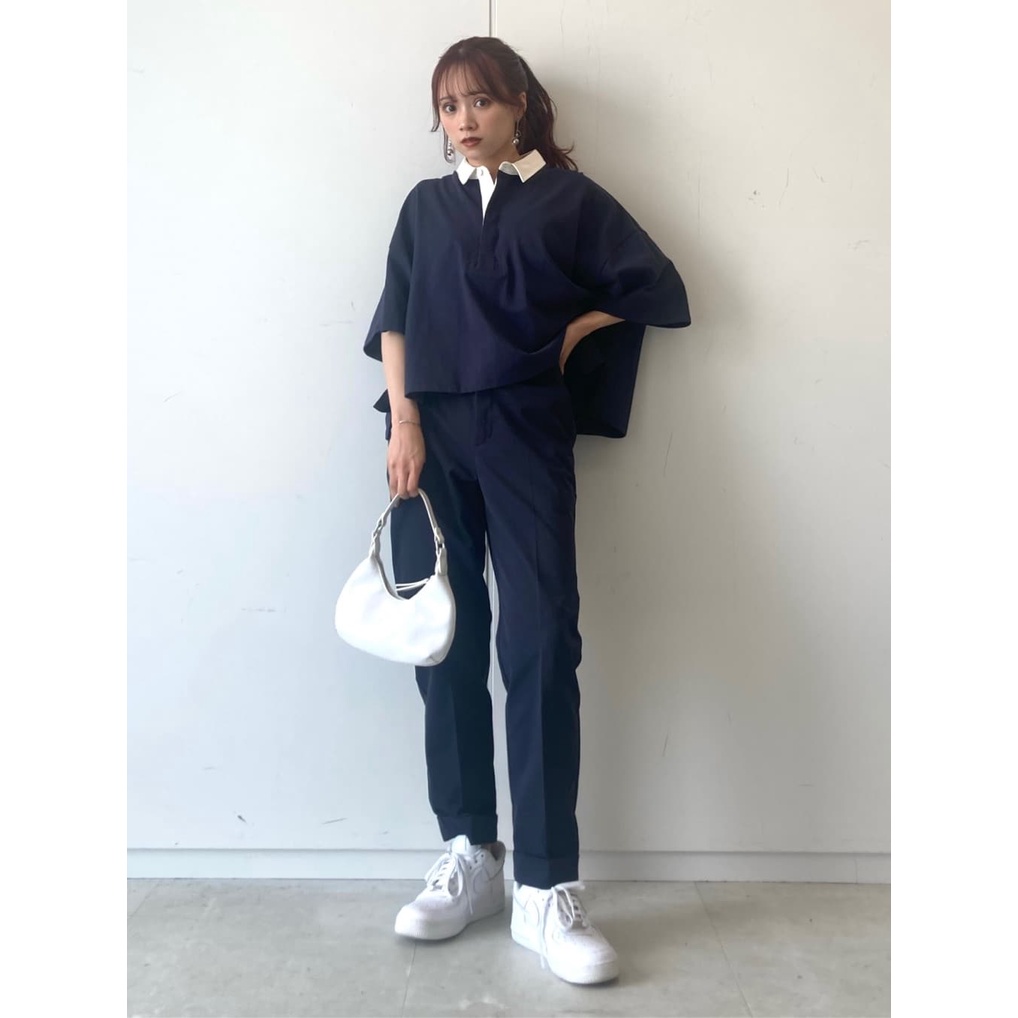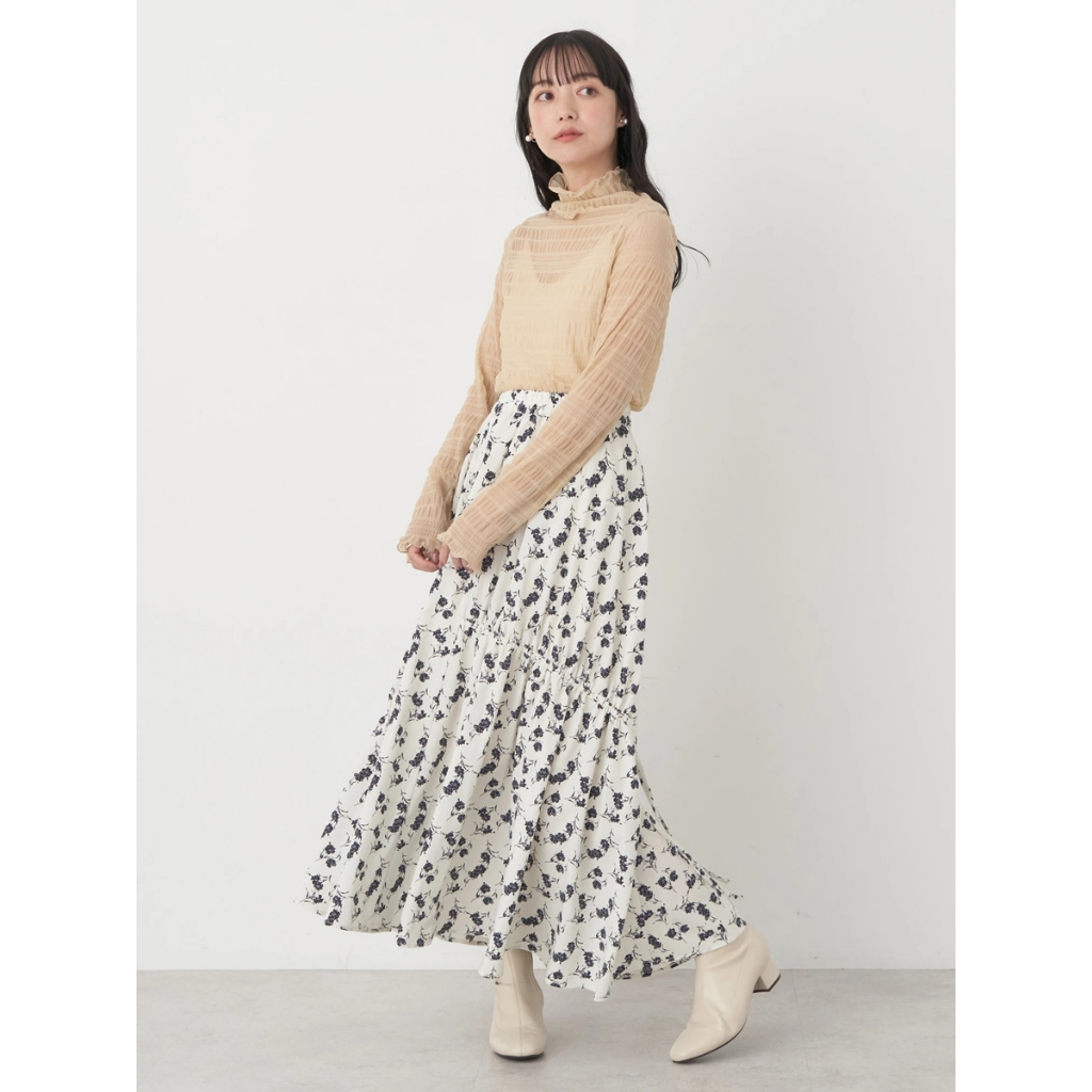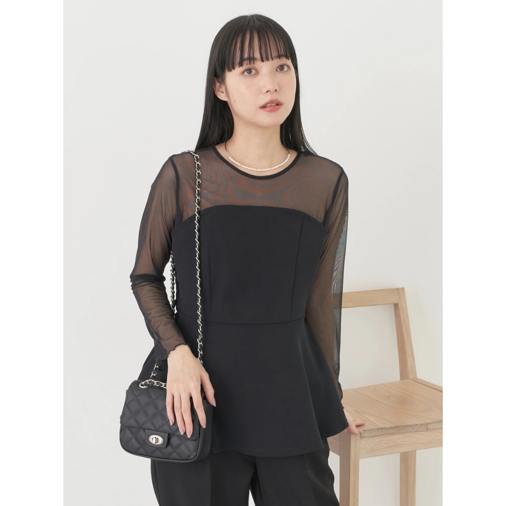 earth music&ecology 透明感肩袖拼接傘擺上衣(1M41L0C0200)