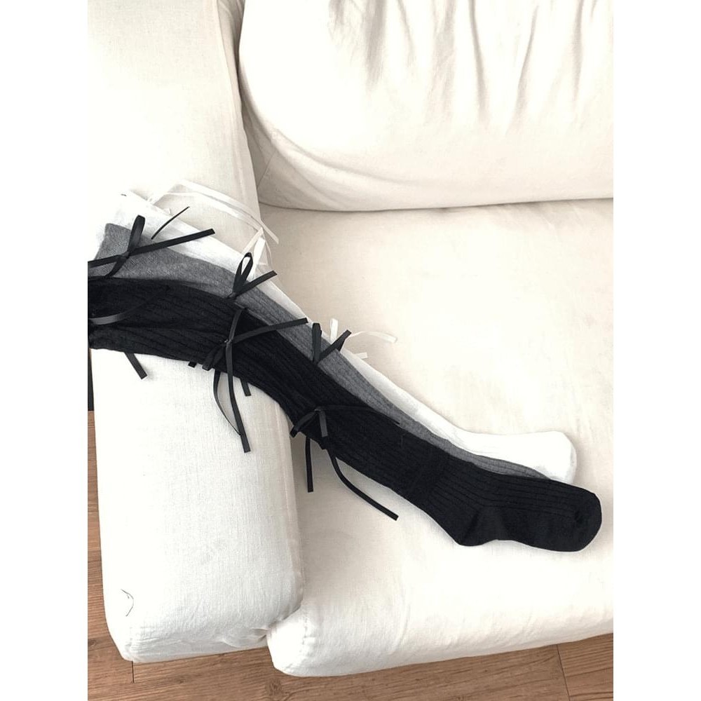 Codibook|韓國 wonderwonder 蝴蝶結緞帶透膚花紋絲襪[預購]襪子 女裝白色|灰色|黑色SocksCodibook 韓國女裝購物平台