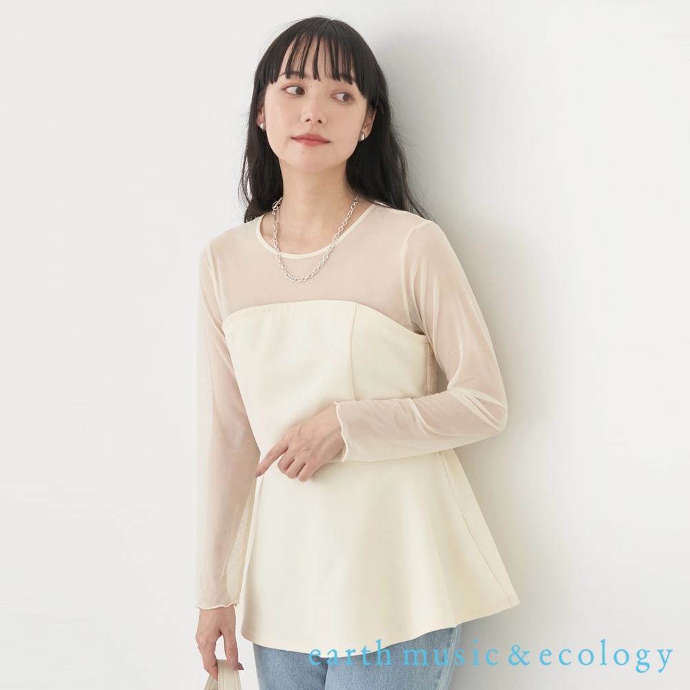 earth music&ecology 透明感肩袖拼接傘擺上衣(1M41L0C0200)象牙色F|黑色F|藍色FT-shirtsearth music&ecology Select Store