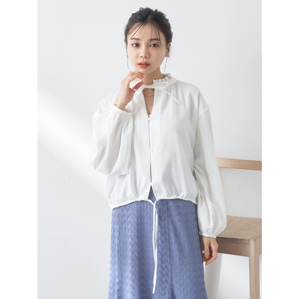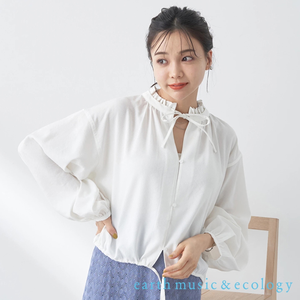 earth music&ecology 荷葉摺邊綁結設計襯衫罩衫(1K42L0A0530)本白F|淡青色FShirts & Blousesearth music&ecology Select Store