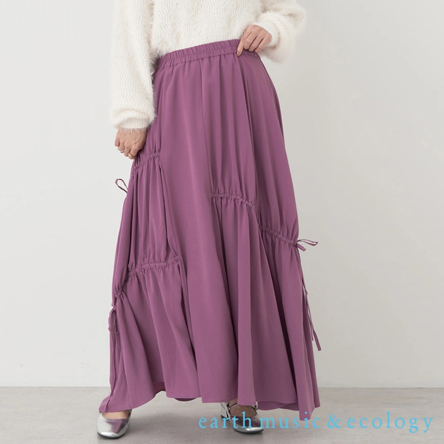 earth music&ecology 不對稱抽繩綁結設計長裙(1M37L0L0500)黑色F|粉紅色F|花圖案Fearth music&ecology Select Store