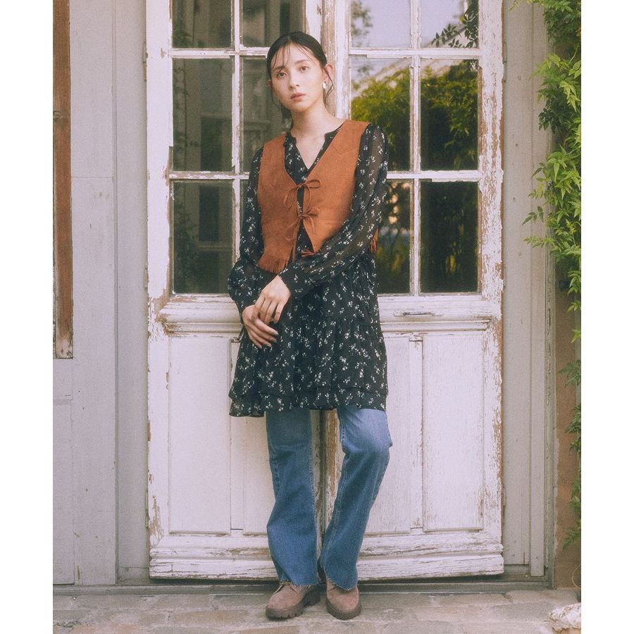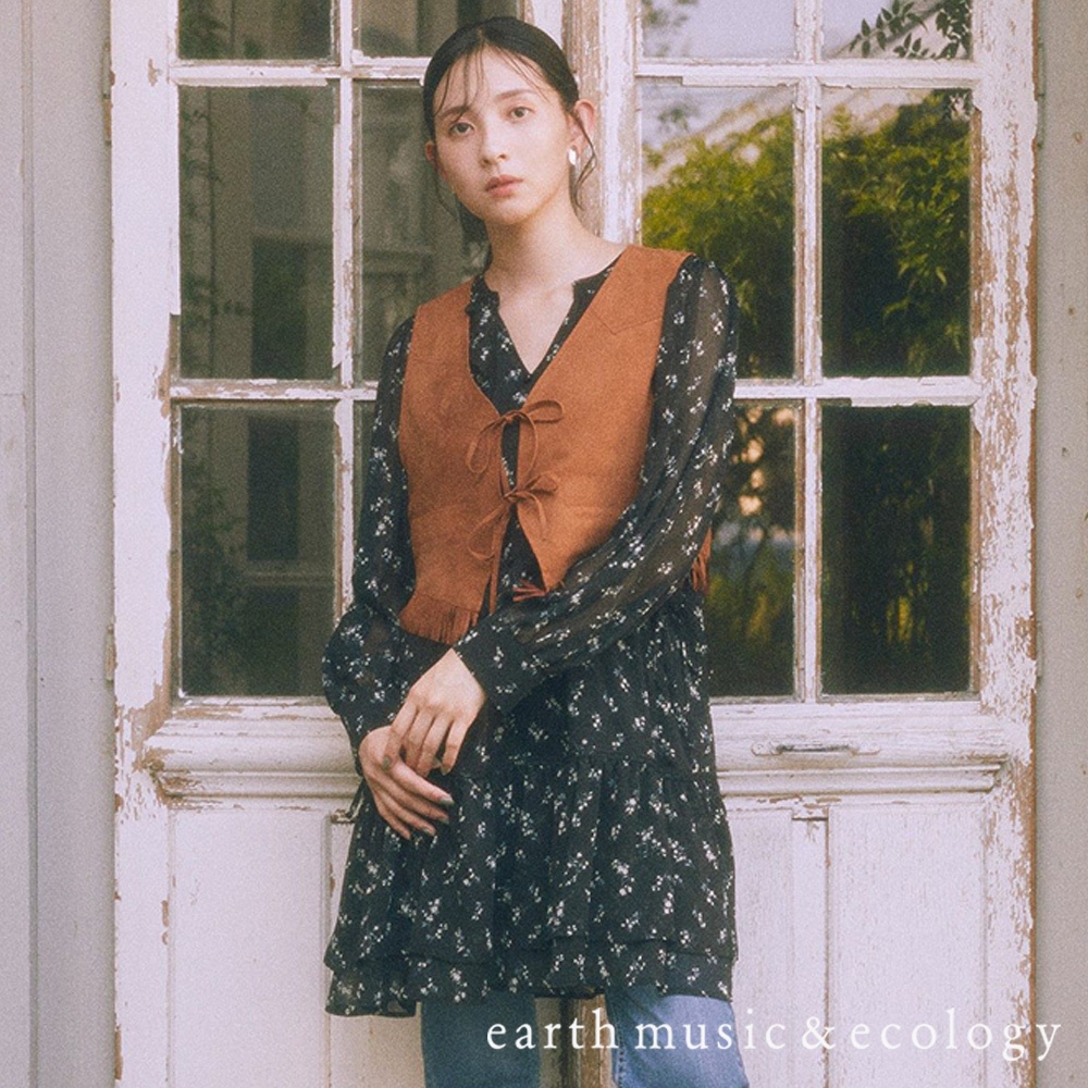 earth music&ecology 復古碎花分層摺邊抽繩設計長袖洋裝(01000689700)黑色F|棕色Fearth music&ecology Select Store