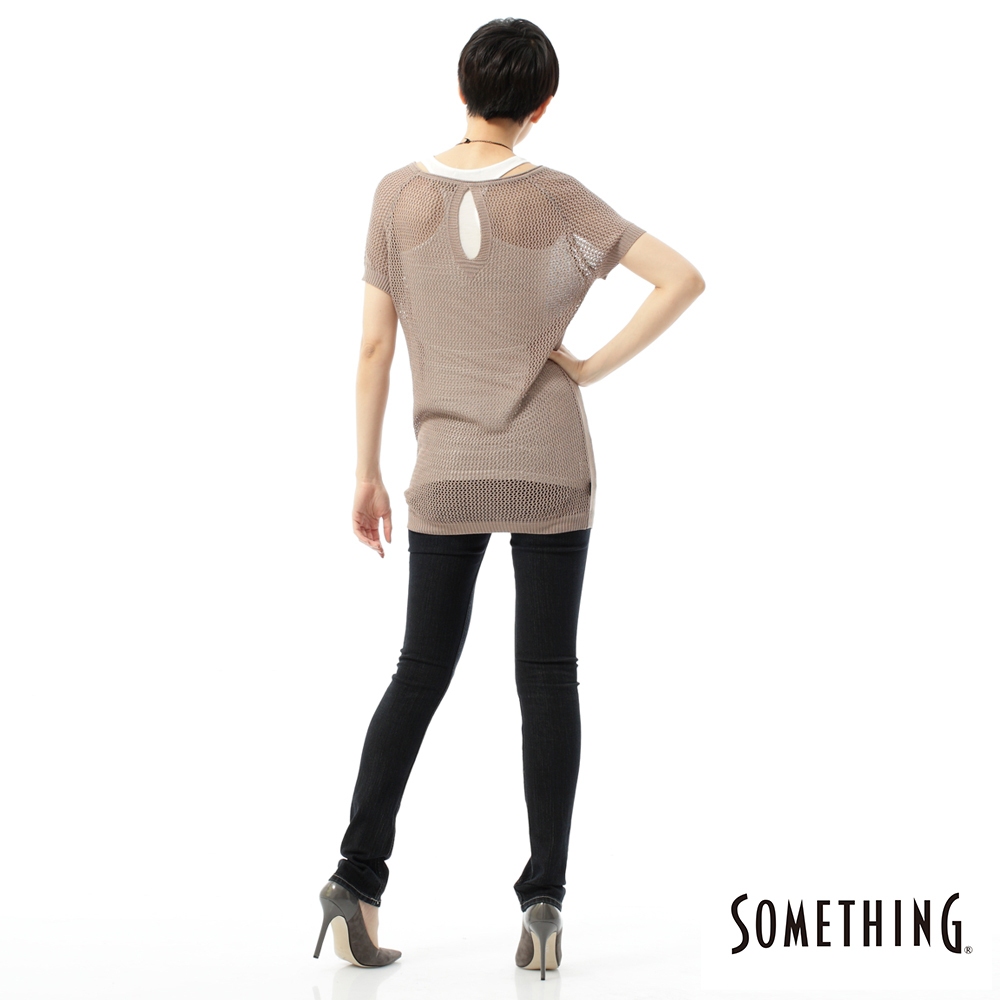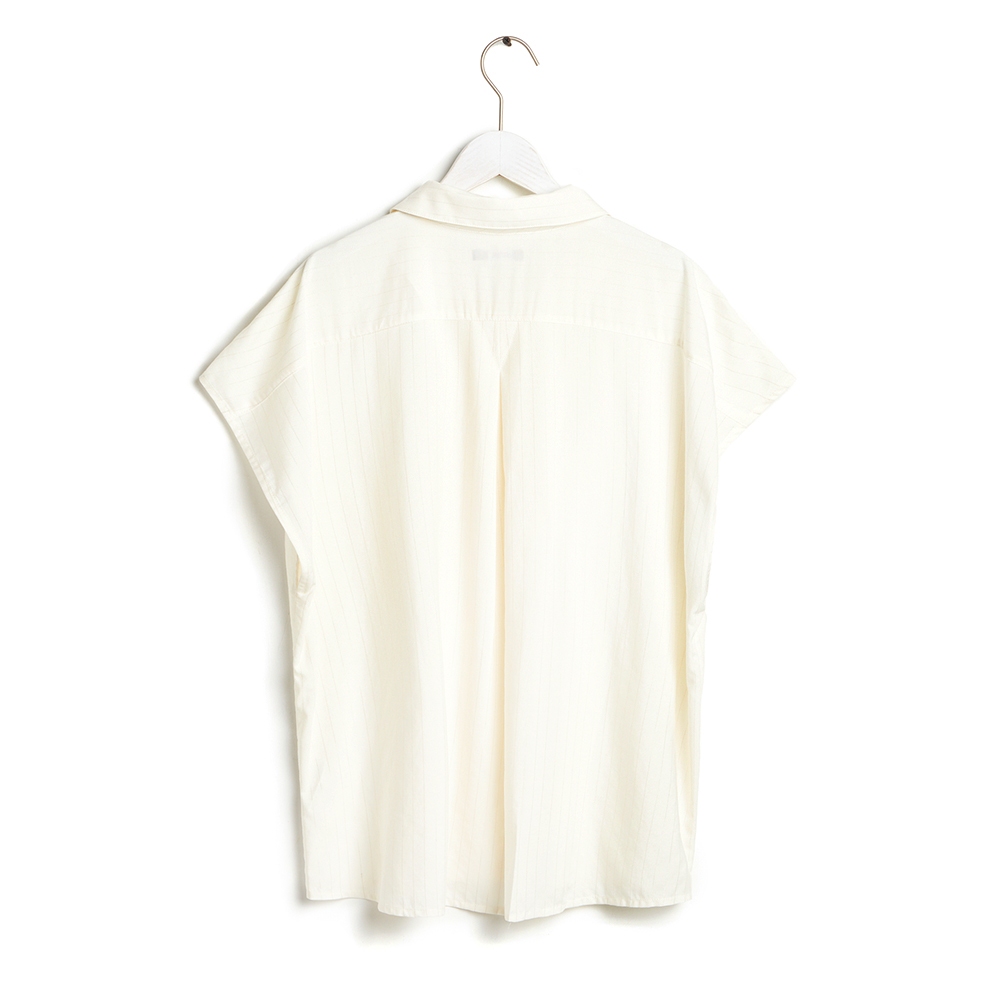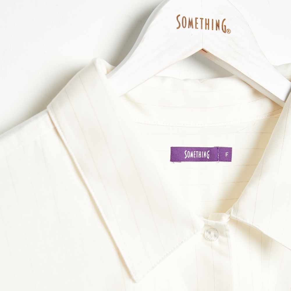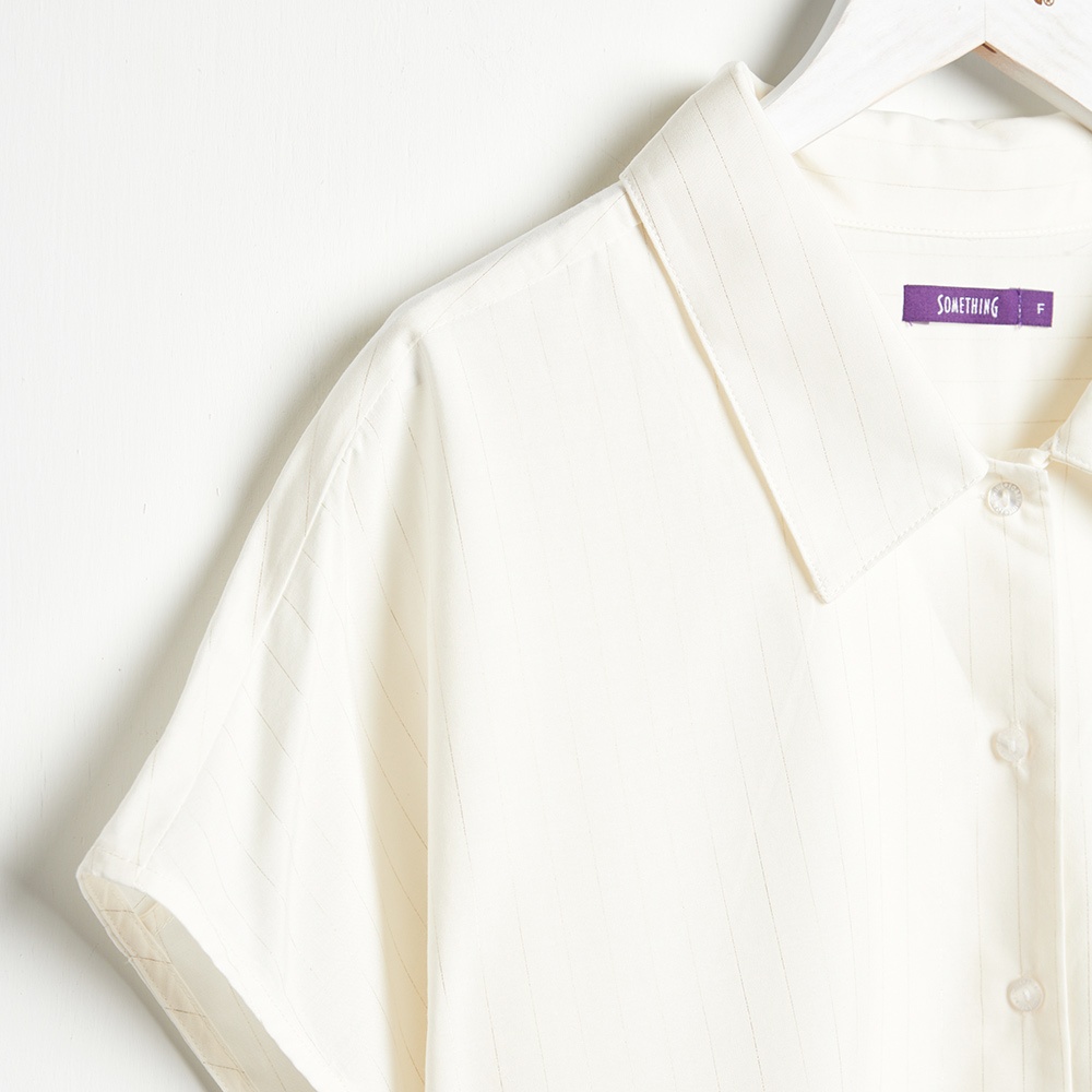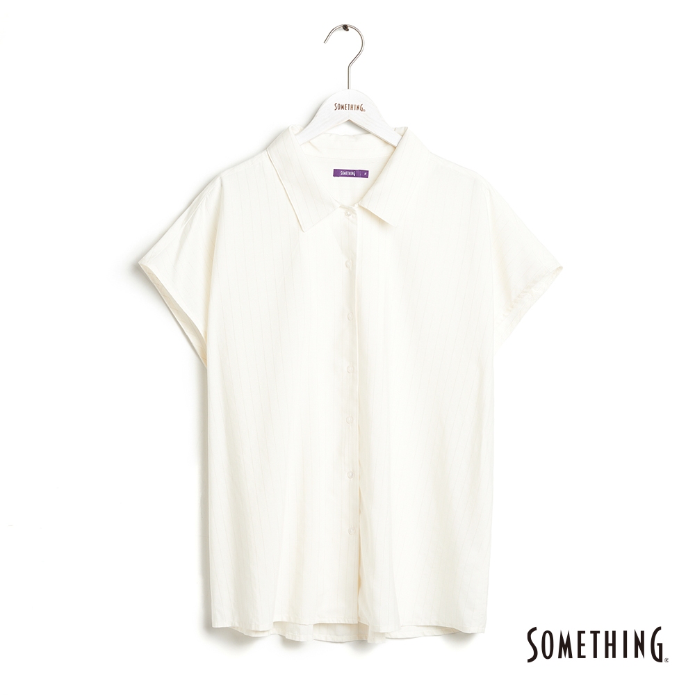 SOMETHING 女款 涼感天絲 金蔥細紋三分袖剪裁短袖襯衫(白色) FShirts & BlousesEDWIN 官方旗艦店
