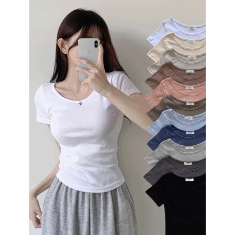 Codibook|韓國 JASMINBELL 圓領基本素面短袖上衣[預購]短袖上衣 T恤 女裝象牙白,無|天空藍,無|粉紅色,無|灰色,無|淺米色,無|深米色,無|卡其色,無|海軍藍,無|棕色,無|墨色,無|黑色,無T-shirtsCodibook 韓國女裝購物平台