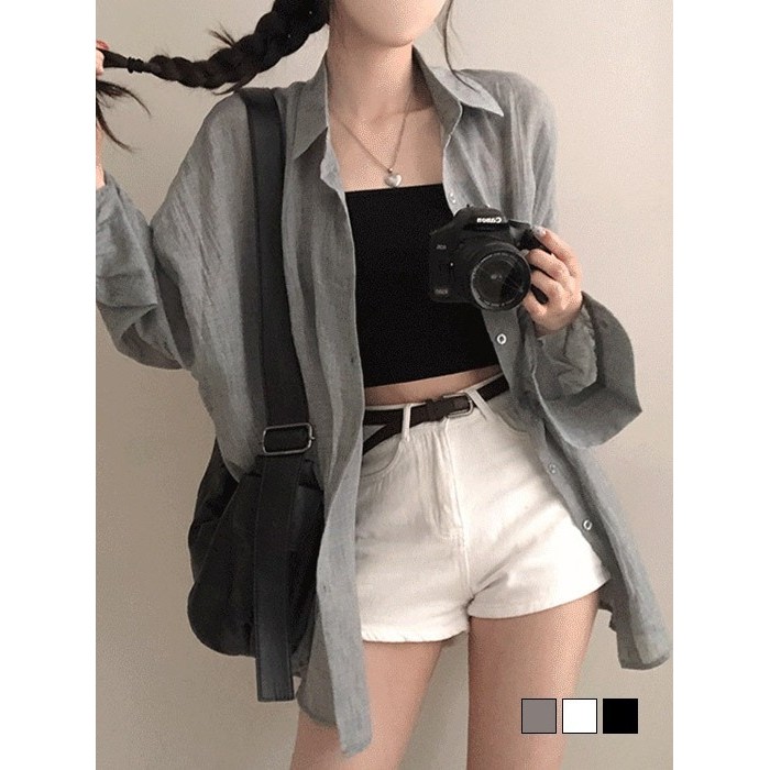 Codibook|韓國 gifteabox 輕薄透膚寬鬆襯衫[預購]襯衫 女裝灰色,free|象牙白,free|黑色,freeShirts & BlousesCodibook 韓國女裝購物平台