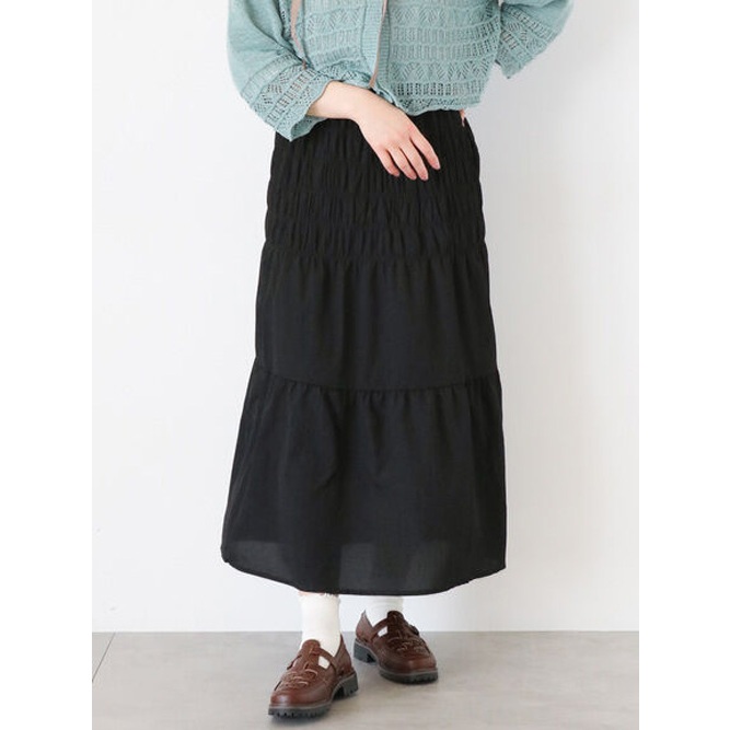 ehka sopo 素色/碎花縮褶造型分層長裙(FF42L0L0780)綠色F|炭灰色F|黑色Fearth music&ecology Select Store
