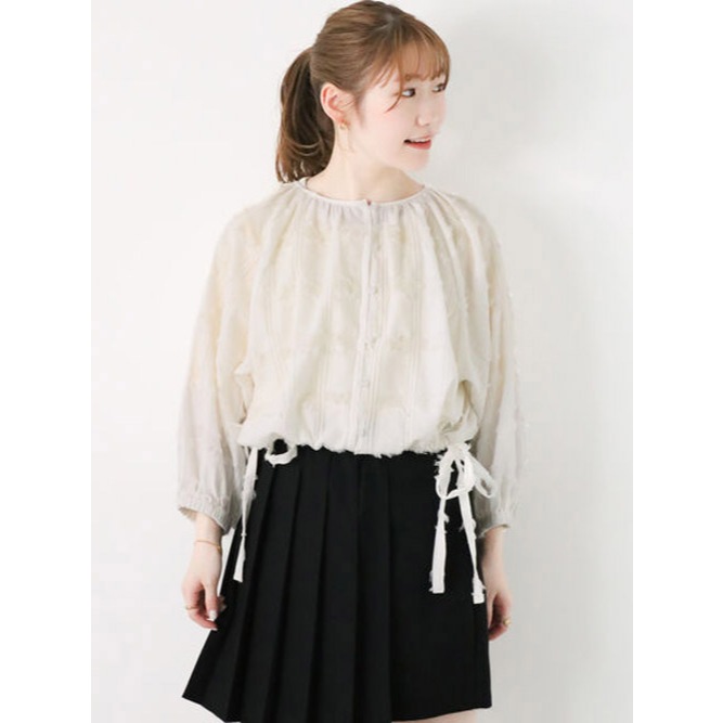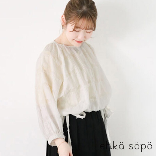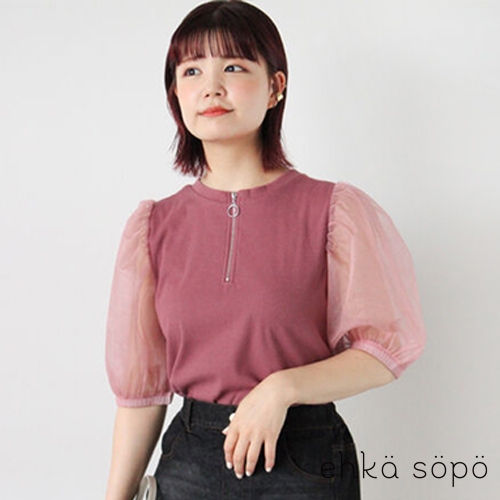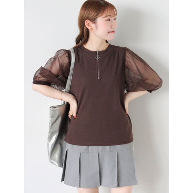 ehka sopo 前拉鍊設計透明感澎袖圓領上衣(FF43L1C0480)本白F|黑色F|粉紅色F|棕色FT-shirtsearth music&ecology Select Store