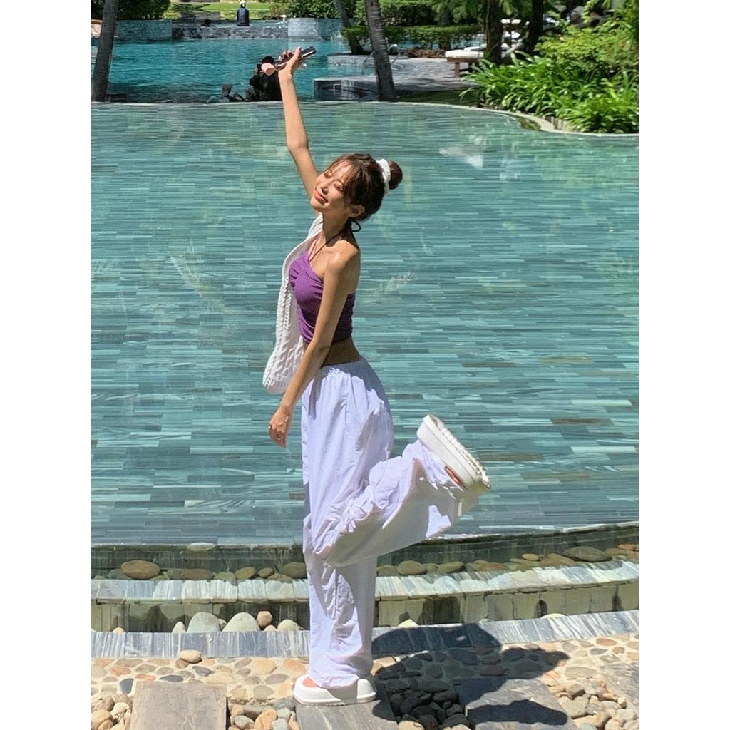 Codibook|韓國 MINGPIECE 質感皺摺尼龍緞帶工裝寬褲[預購]長褲 女裝象牙白,free|粉紅色,free|黑色,freePantsCodibook 韓國女裝購物平台
