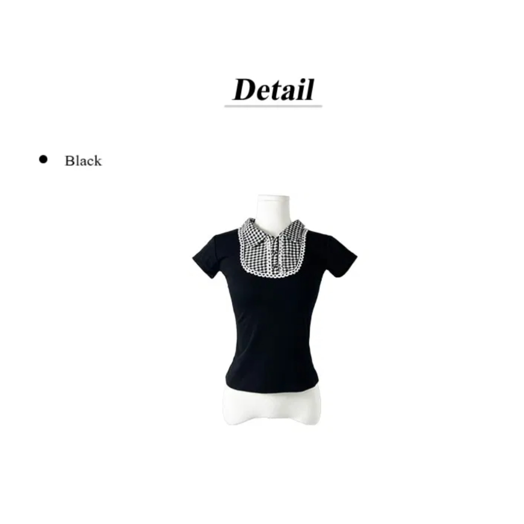 Codibook|韓國 anyonemore 經典復古格紋領襯衫[預購]雪紡襯衫 Polo洋裝 女裝free,黑色Shirts & BlousesCodibook 韓國女裝購物平台