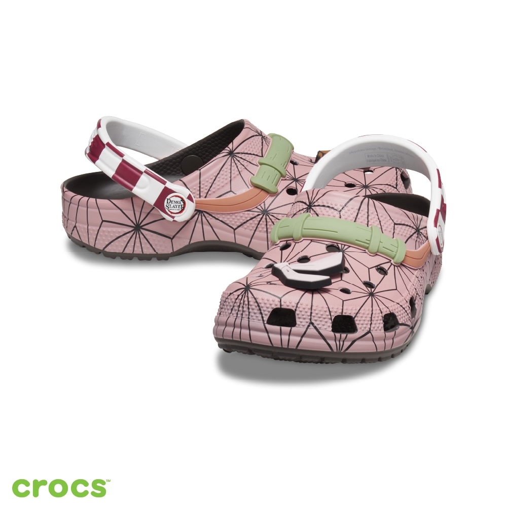 Crocs卡駱馳 (中性鞋) 鬼滅之刃-禰豆子-經典克駱格 中性鞋-粉紅色/灰黑色-209320-206M4W6(22.1-22.9CM)|M5W7(22.9-23.8CM)|M6W8(23.8-24.6CM)|M7W9(24.6-25.5CM)Flat SandalsCrocs官方直營店