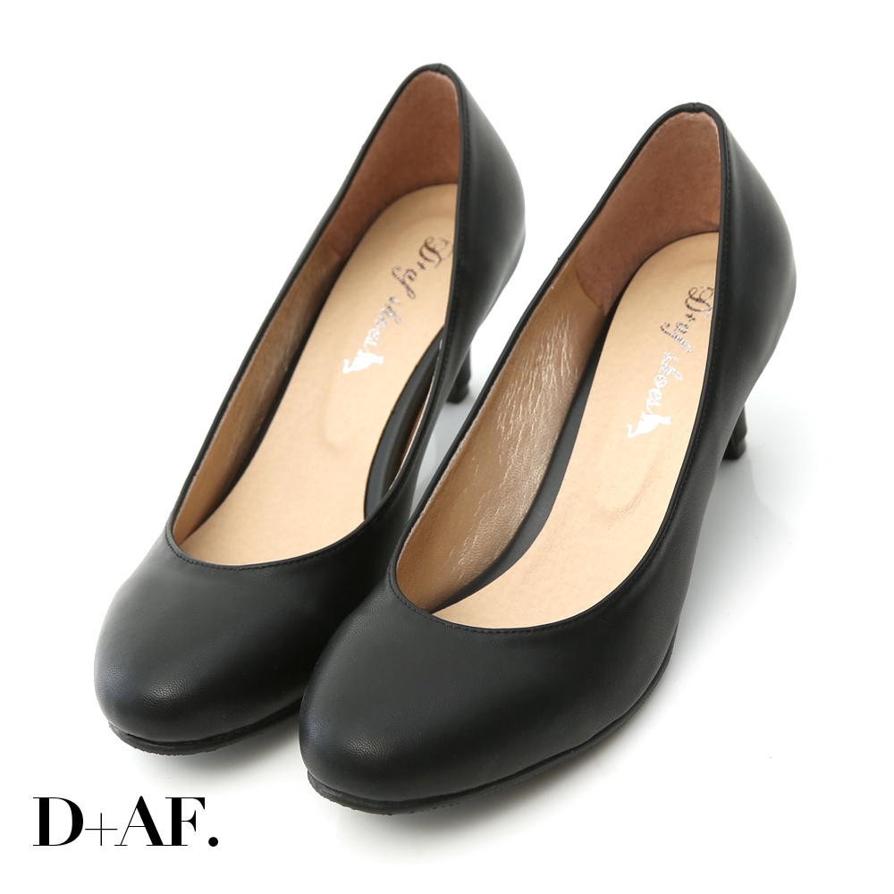 D+AF 跟鞋 包鞋 [百搭單品MIT素面圓頭5.5cm中跟鞋] 1色 35-43號 大尺碼