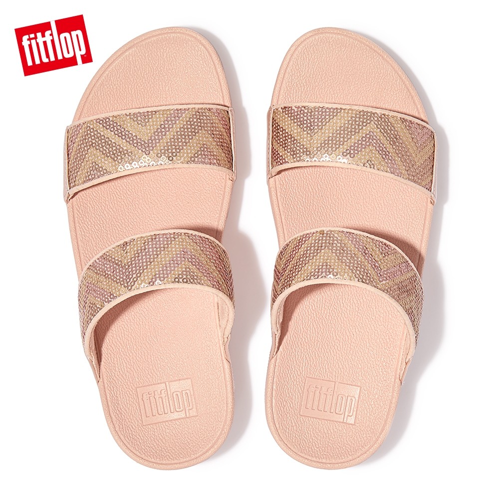 【FitFlop】LULU SEQUIN ZIGZAG SLIDES多彩亮片造型雙帶涼鞋-女(玫瑰色)US5|US6|US7|US8Flat SandalsFitFlop官方旗艦店