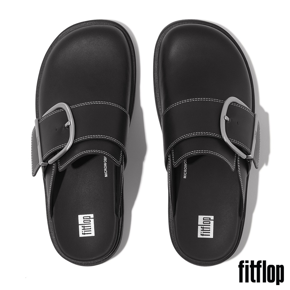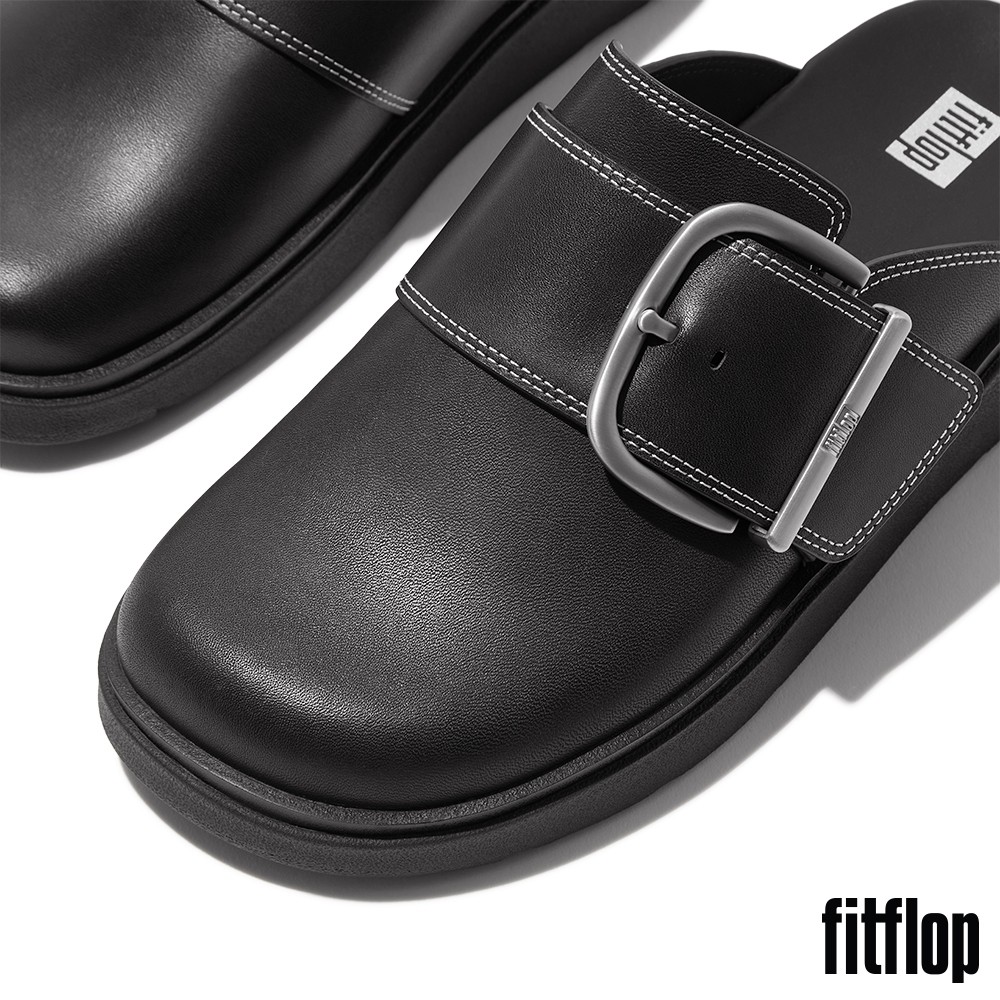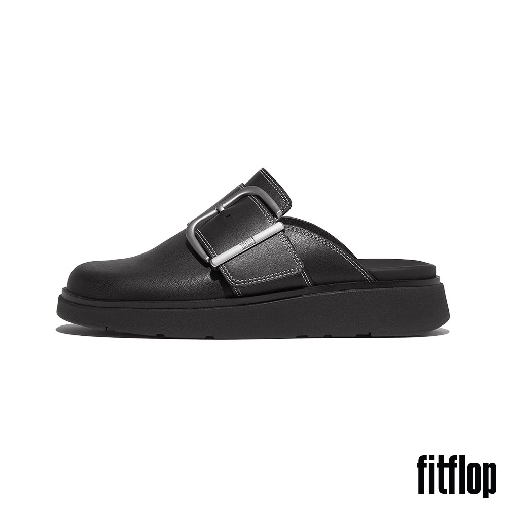 【FitFlop】GEN-FF 大扣環撞色縫線皮革木屐鞋-女(黑色)US5|US6|US7|US8|US9Slip Ons, Mary Janes & MulesFitFlop官方旗艦店