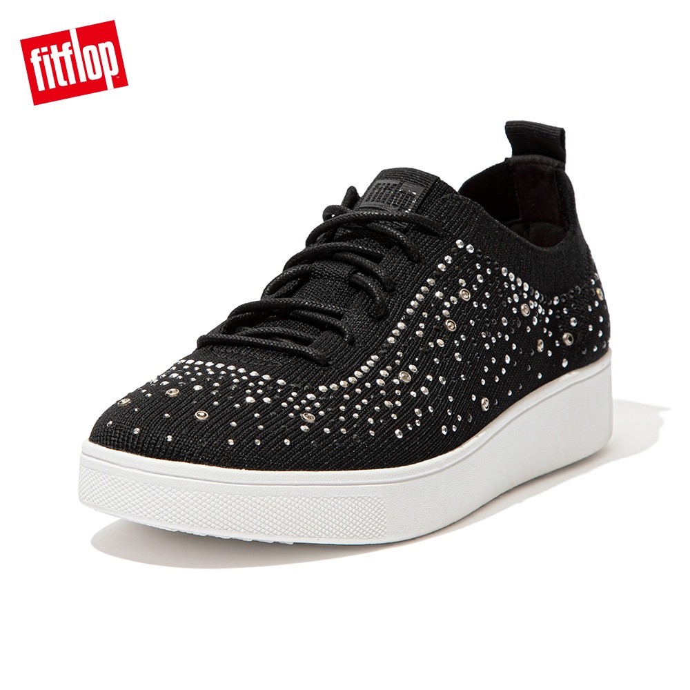 【FitFlop】RALLY OMBRE CRYSTAL KNIT SNEAKERS 運動風繫帶休閒鞋-女(黑色)US8|US9|US5|US6|US6.5|US7|US7.5FitFlop官方旗艦店