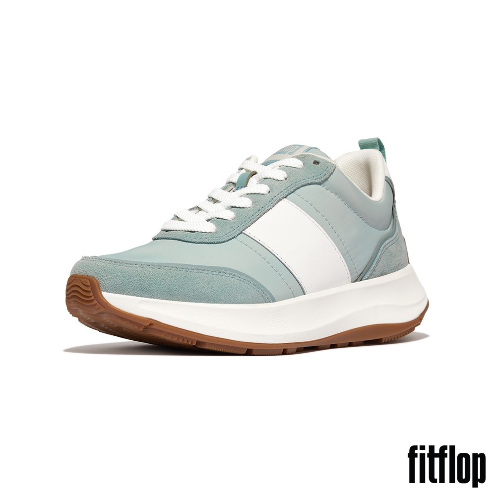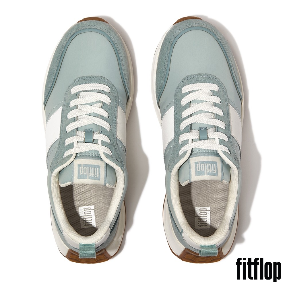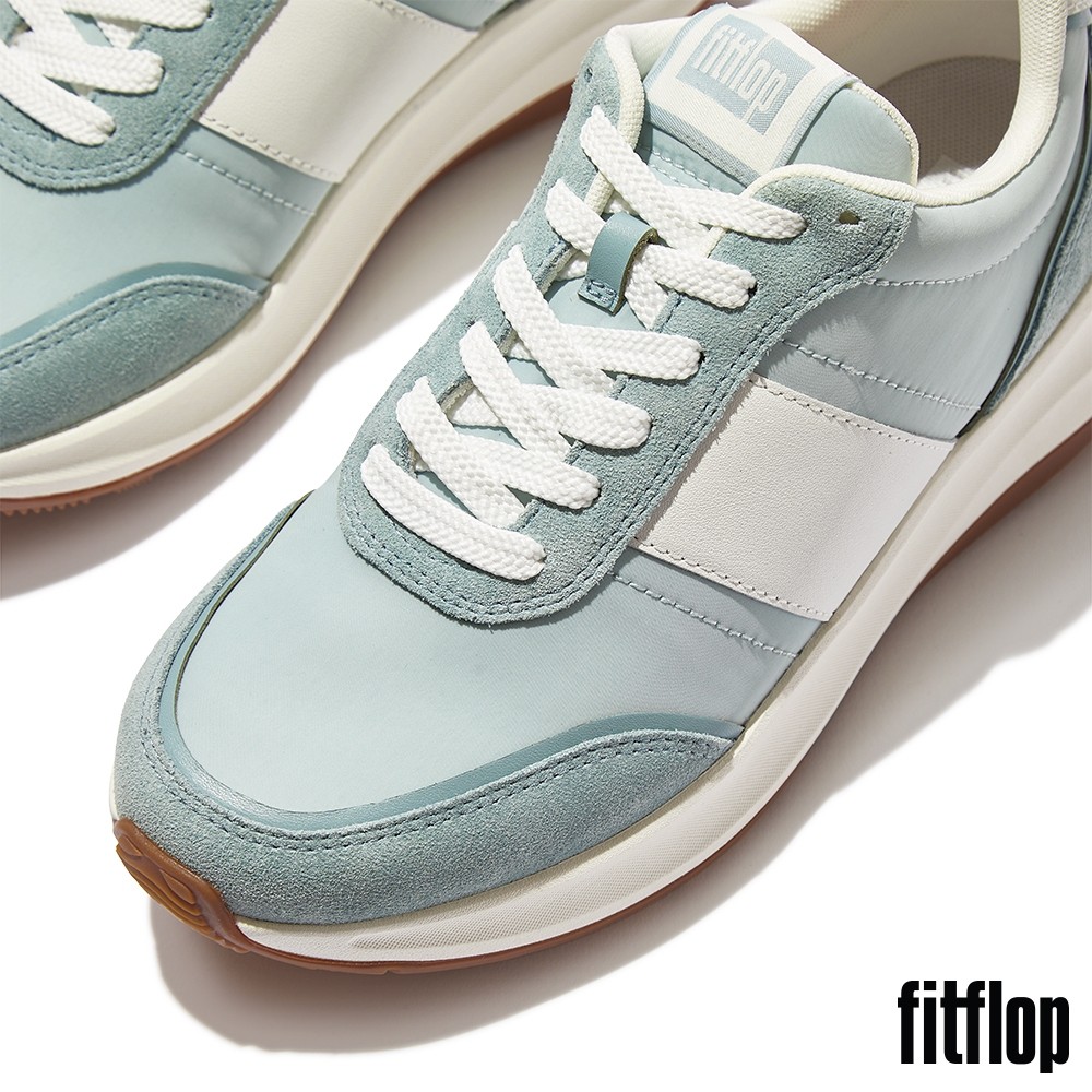 【FitFlop】F-MODE FLOW 皮革麂皮異材質厚底休閒鞋-女(薄荷藍混色)US9|US5|US5.5|US6|US6.5|US7|US7.5|US8FitFlop官方旗艦店