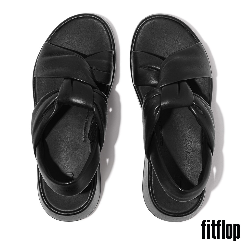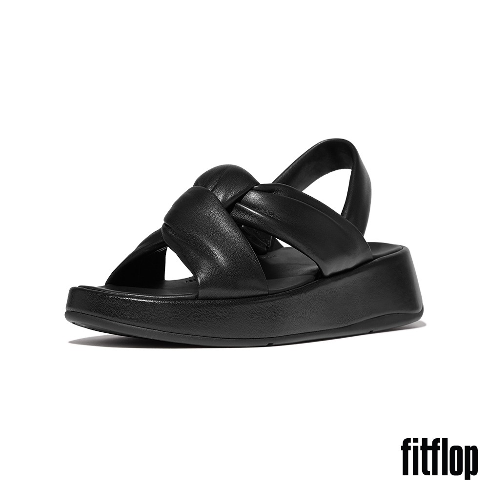 【FitFlop】F-MODE 紐結軟皮厚底後帶涼鞋-女(靚黑色)US5|US6|US7|US8|US9Flat SandalsFitFlop官方旗艦店