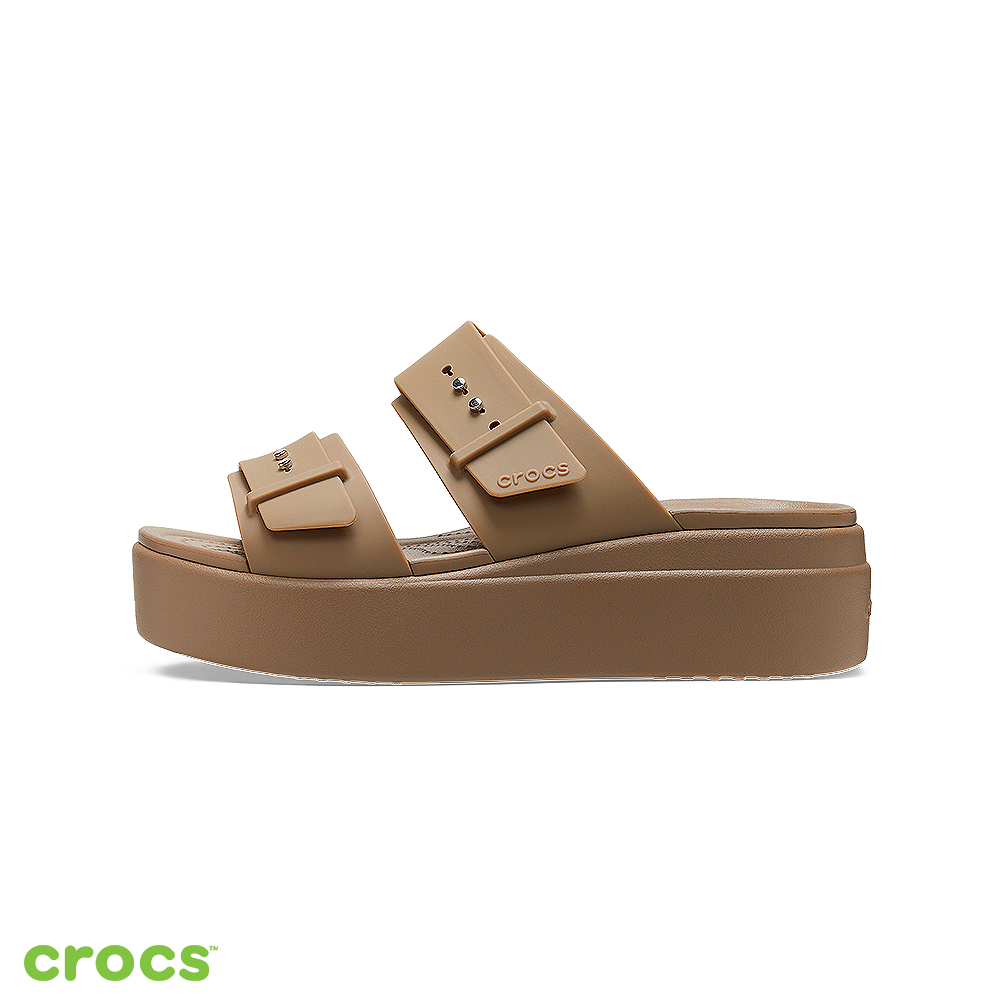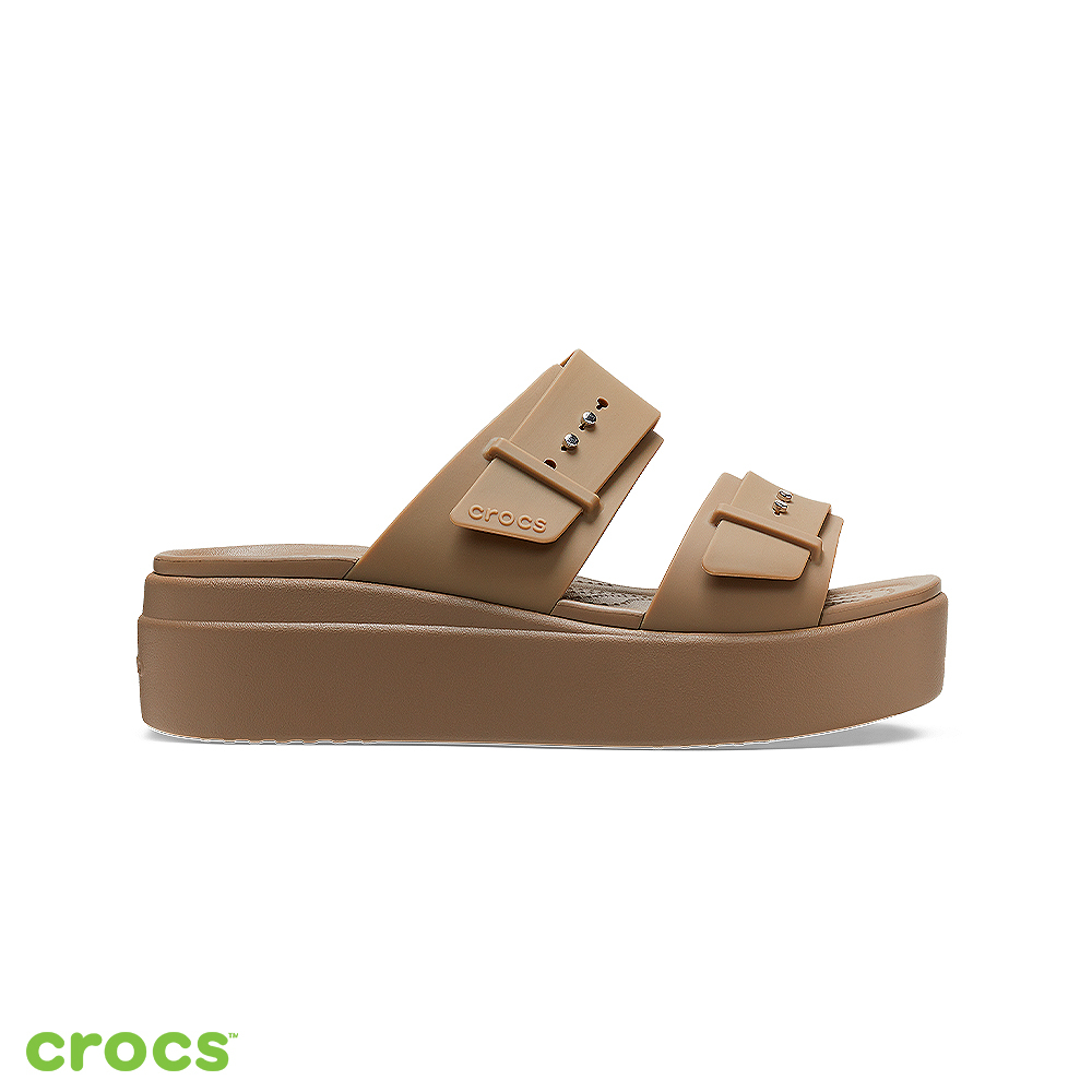 Crocs 卡駱馳 (女鞋) 布魯克林低跟涼鞋 卡其色-207431-260_洞洞鞋W6(22.9cm)|W7(23.8cm)|W8(24.6cm)|W9(25.5cm)Flat SandalsCrocs官方直營店